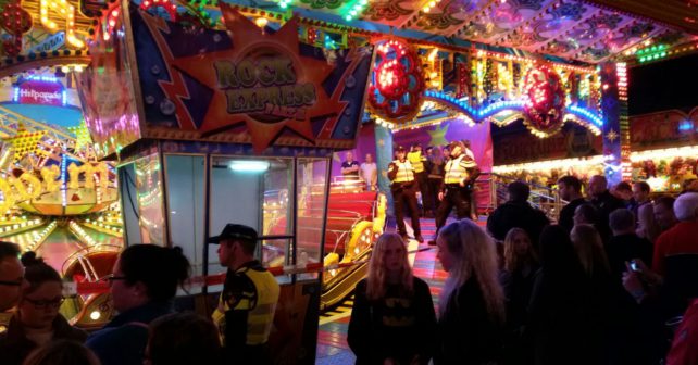 De man was uit een kermisattractie gezet toen hij geen muntje bleek te hebben. Daarna sprong hij op de al draaiende attractie. Toen de attractie harder ging draaien, kon de man zich niet langer vasthouden aan het bakje en viel uit de attractie. De man kwam met zijn hoofd tegen een paal terecht. Het slachtoffer is zwaargewond met de ambulance naar het ziekenhuis vervoerd.