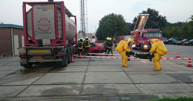 Brandweer Winschoten oefent met gevaarlijke stoffen.