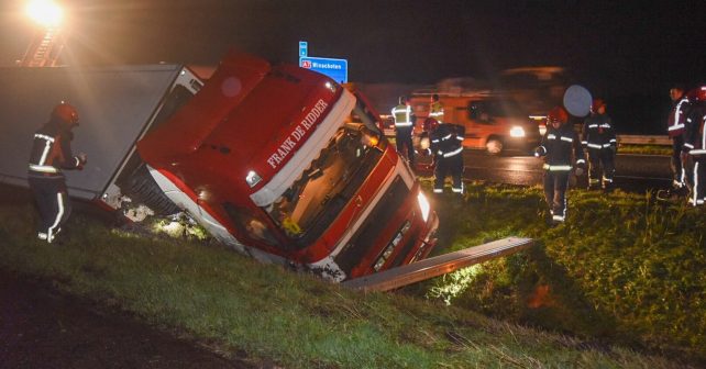 Scheemda – Op de A7 bij tussen Heiligerlee en Scheemda raakte maandagmorgen rond 6:50 een vrachtwagen van de weg. De chauffeur belandde met de hele combinatie in de naastgelegen sloot.