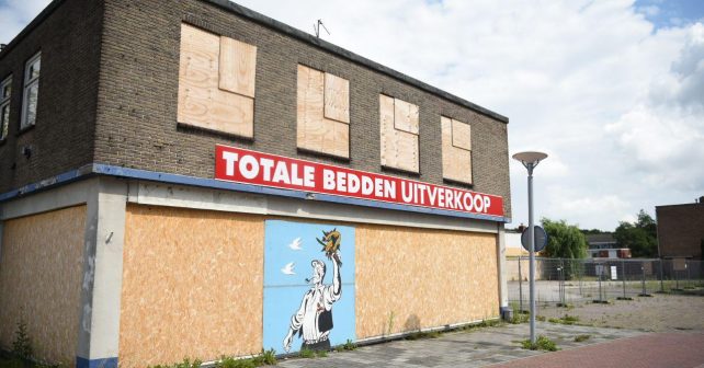 Winschoten – Het ‘krottencomplex’ zo noemt de Verenigde Communistische Partij het. Het dichtgetimmerde appartementencomplex en een dichtgetimmerd winkelcomplex aan de Mr. D.U. Stikkerlaan. ‘Voor veel inwoners een doorn in het oog’ aldus de VCP.