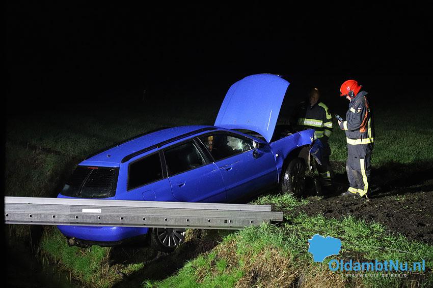 Een 27-jarige bestuurder uit Winschoten reed samen met een passagier over de Leentjerweg komende vanuit de richting van de Oudeweg. Op de kruising met de Oostwoldjerweg zag hij ‘ iets oversteken’ waardoor hij op de T-splitsing rechtdoor reed, door de berm en met een klap in de slootwal tot stilstand kwam.