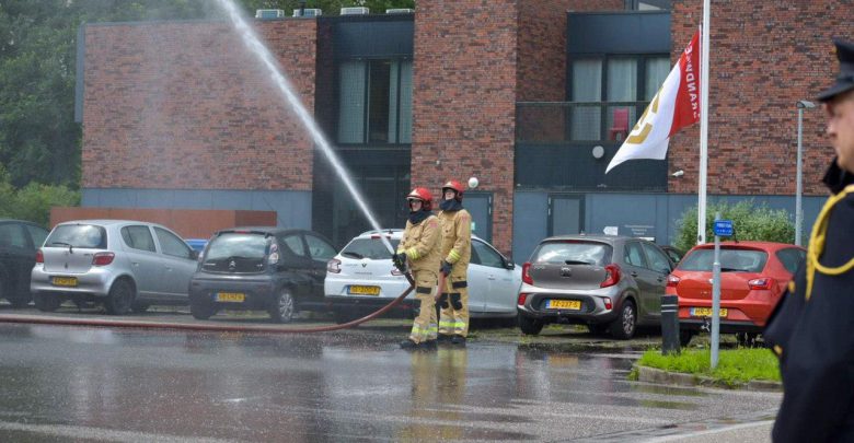 Finsterwolde – Met de vlag half stok en een water-ereboog voor de kazerne heeft het brandweerkorps Finsterwolde zaterdagmiddag om 13.00 uur stil gestaan om te herdenken dat bij hulpverlening ook slachtoffers vallen.