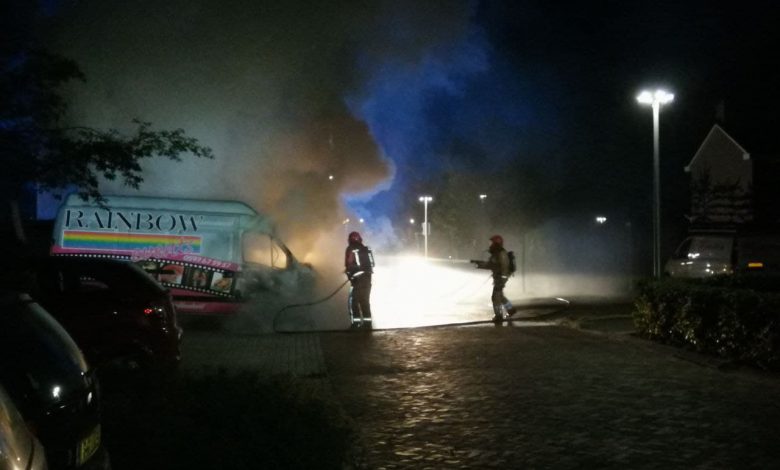 Bedrijfsbus Rainbow Events volledig verwoest door brand: “Tegenslag op tegenslag”