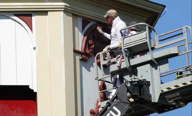 Midwolda – De afgelopen maand is de kerktoren in Midwolda weer geschilderd. Dit gebeurde met een hoogwerker. Heel anders dan toen de toren in 1980 geverfd werd. Toen werd er eerst een steiger op gebouwd en moesten de schilders met ladders van steiger naar steiger klimmen om zo de toren te schilderen.