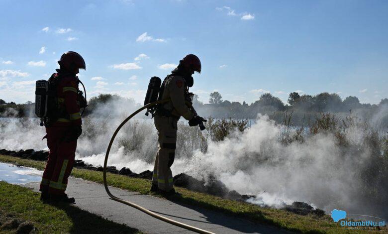Oostwold – Zaterdagmiddag is langs het fietspad aan de Kromme Elleboog in Oostwold een bermbrand uitgebroken. De brandweer van Finsterwolde werd snel gealarmeerd en arriveerde snel ter plaatse om de vlammen te doven.