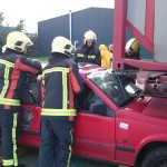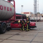 Oefening – De brandweer van Winschoten kreeg dinsdagavond rond 19:00 de melding van een ongeval op het terrein van Klein transport in Winschoten. Bij aankomst bleek het te gaan om een auto die met hoge snelheid op een tankoplegger was gereden. Door de aanrijding is een schoonmaker van de oplegger gevallen samen met een vaatje chemisch schoonmaakmiddel en is buiten bewustzijn geraakt. 2 brandweermannen werden in chemiepakken ingezet om deze persoon uit de vloeistof te verwijderen. Op aanwijzing van het ambulancepersoneel is het dak van de auto verwijderd waarna het slachtoffer dat nog in de auto bekneld zat ook kon worden bevrijd.