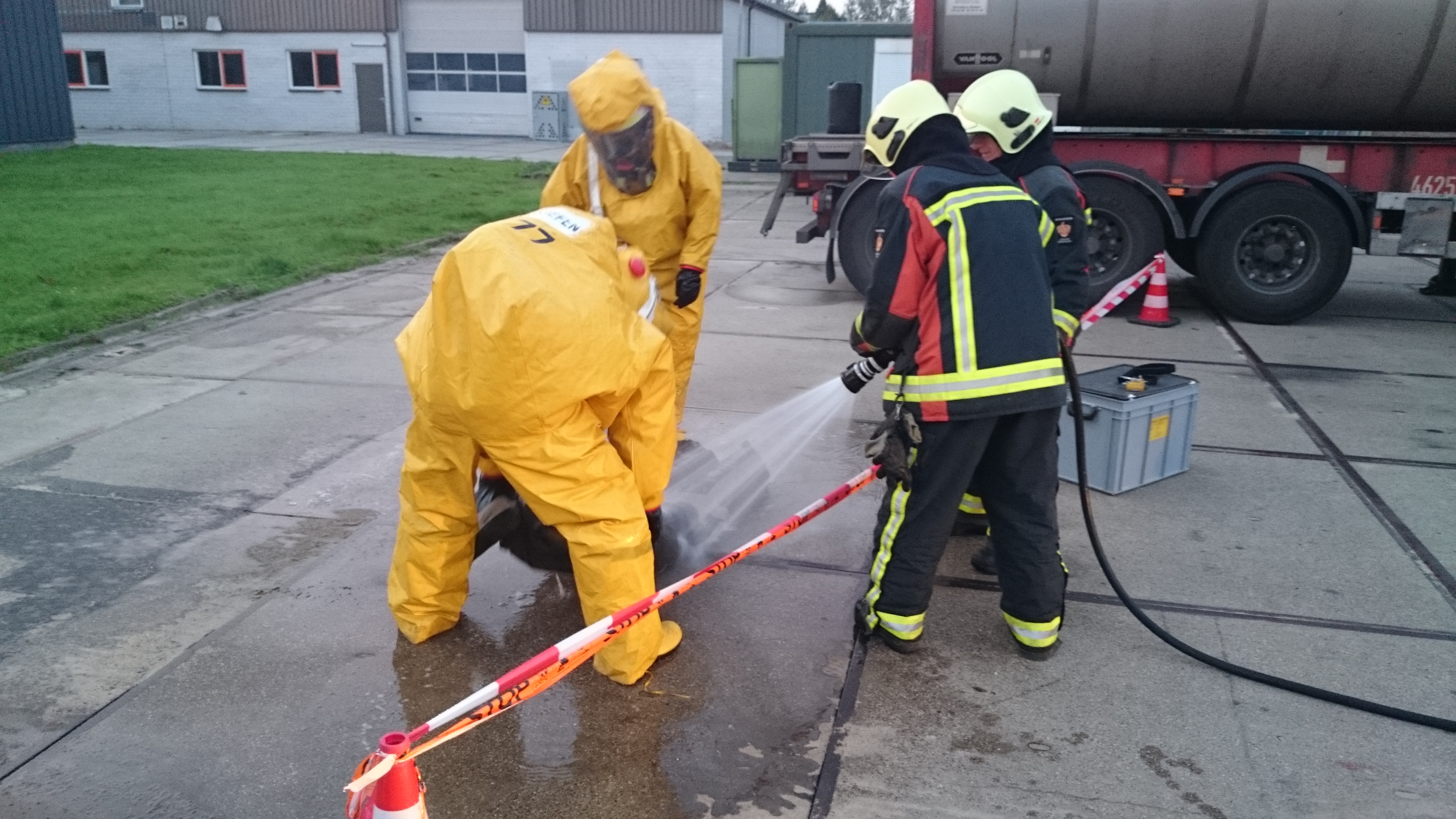 Brandweer Winschoten oefent met gevaarlijke stoffen.