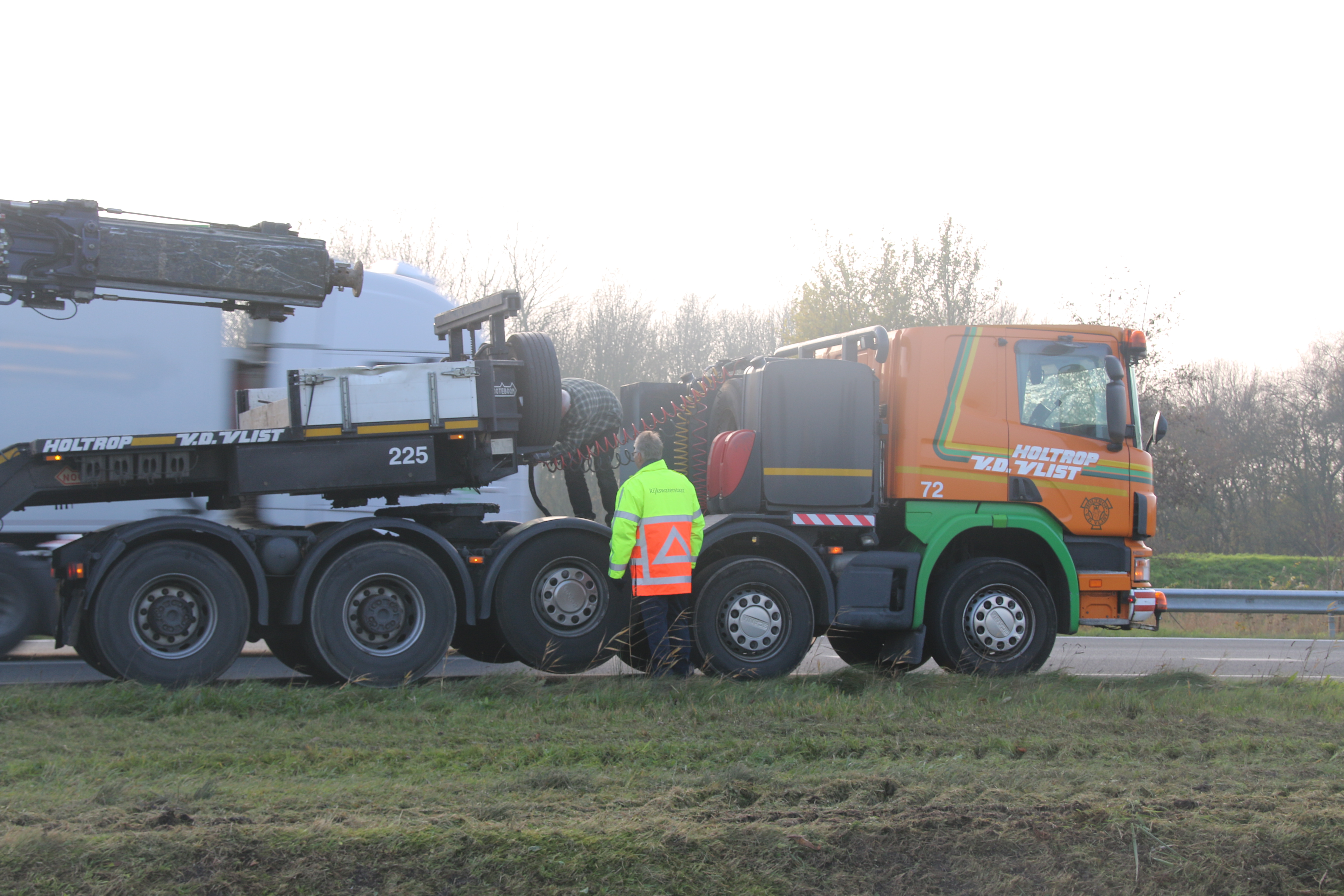 Doordat er iets mis was met het koppelstuk van de vrachtwagen kon deze niet meer verder. Een collega kwam met zijn vrachtwagen de trailer ophalen waarna beide hun weg konden vervolgen. Rijkswaterstaat zorgde voor afzetting van de vluchtstrook.