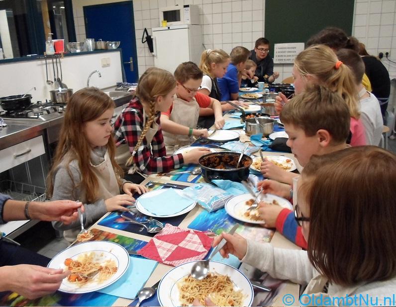 Nadat de kinderen uitleg kregen over de mogelijkheden van de software bloedglucosemeter, begon iedereen met koken. Het menu bestond uit zelfgemaakte groentesoep, spaghetti bolognese en een Yammie toetje (inmiddels blijkt het toetje al meerdere keren thuis gemaakt). Tijdens het bereiden van deze verse en met elkaar bereide maaltijden, hadden de kinderen volop de gelegenheid om elkaar beter te leren kennen. Telefoonnummers zijn uitgewisseld en er is een groeps-app aangemaakt met als titel: ‘Diabetes maatje’.