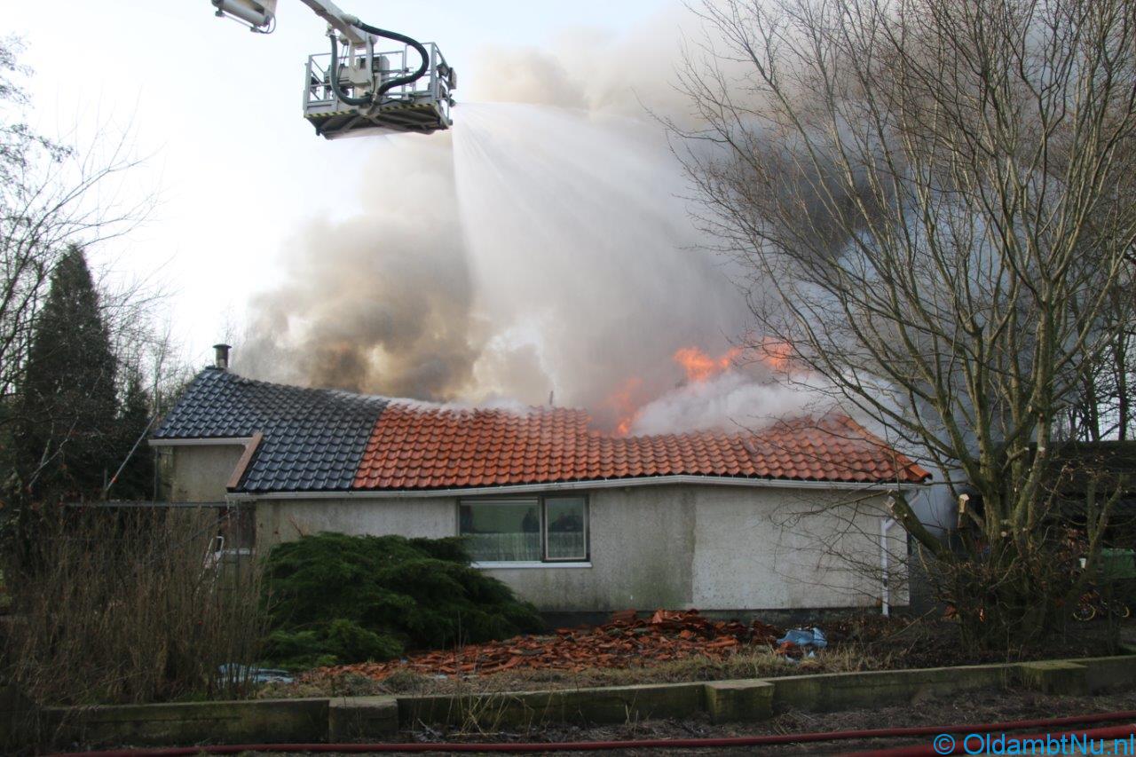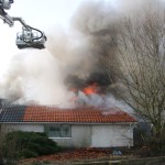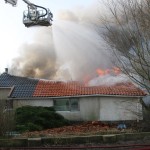 Nadat het grootste deel van het vuur uit was, heeft een kraan de rokende resten van de woning verspreid waardoor we deze ook konden afblussen. Het afblussen heeft nog tot ver in de middag geduurd.