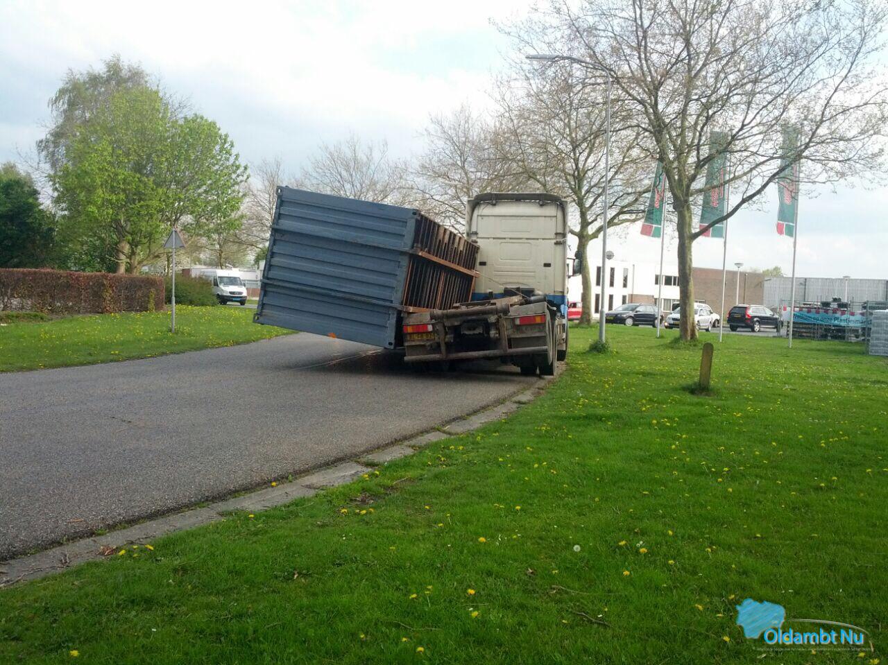 Winschoten – Maandag in het begin van de avond is er op de Transportbaan te Winschoten een zeecontainer van een vrachtwagen gevallen. Dit gebeurde in de bocht ter hoogte van de Welkoop.
