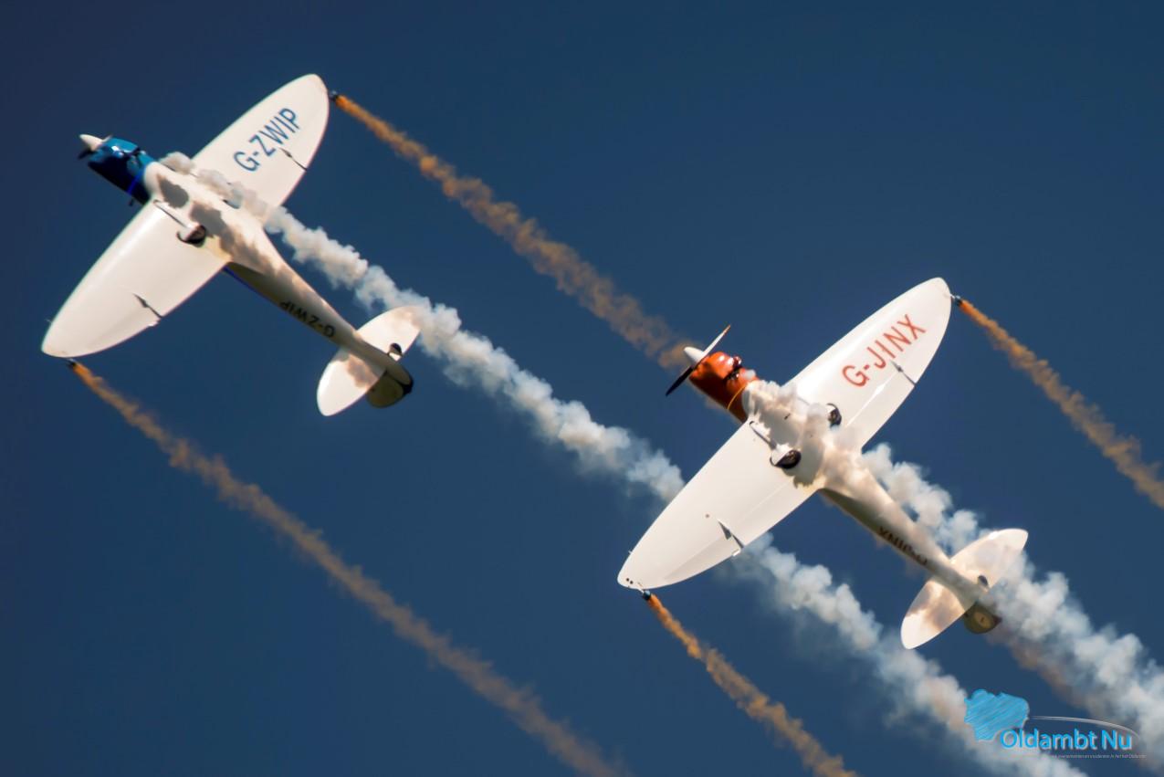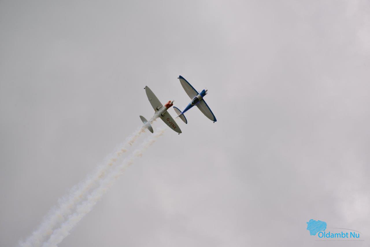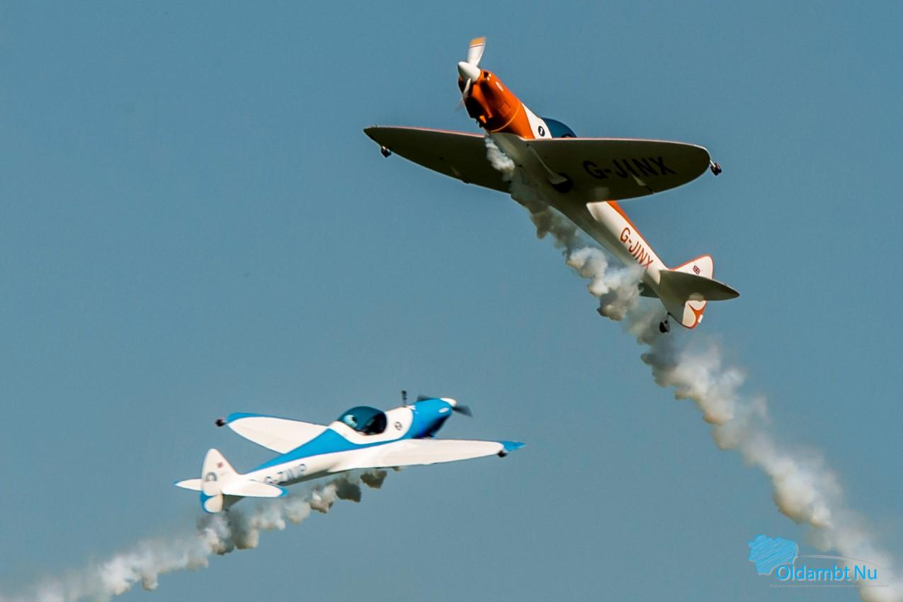 Oostwold – Op 2e Pinksterdag genoten de bezoekers uit binnen- en buitenland van een bijna vijf uur durende airshow waarbij vooral de vliegtuigen uit de Tweede Wereldoorlog de show stalen. In diverse formaties vlogen Spitfires, Mustangs en een zeldzame Corsair door het Oldamster luchtruim. Organisator Tom van der Meulen had in het kader van 70 jaar bevrijding alles uit de kast gehaald op het gebied van nog vliegende warbirds. Naast veel Engelse toestellen was ook de Nederlandse vliegende luchtvaarthistorie goed vertegenwoordigd.