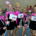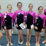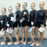 Bij jongste gymnasten, de benjamins, gingen de twee oefeningen zeer goed. Met hun bal-oefening kwamen ze net naast het podium op de 4e plaats. De tweede oefening zonder materiaal werd nog beter uitgevoerd en daarmee pakten de jonge gymnasten een hele mooie derde plaats en dus de bronzen medaille.