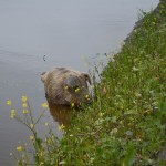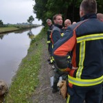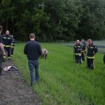 Ze zwom een stukje, vervolgens kwam ze op een verhoogde stuk waarom zij rustig bleef wachten op de brandweerlieden