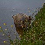 Het varken vond volgens de eigenaar het gras mooier aan de overkant van het water. Toen zij zich omdraaide gleed ze uit en viel ze het water in.