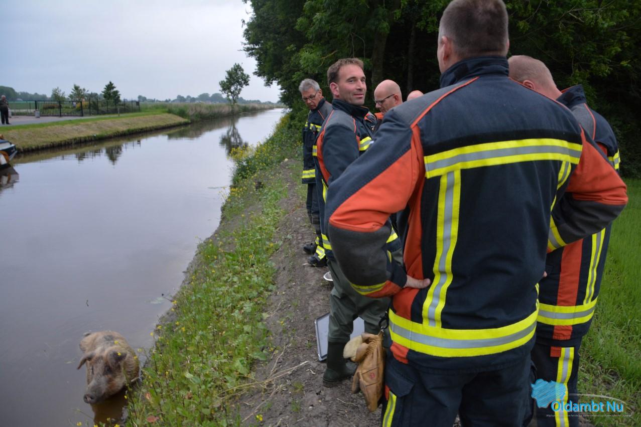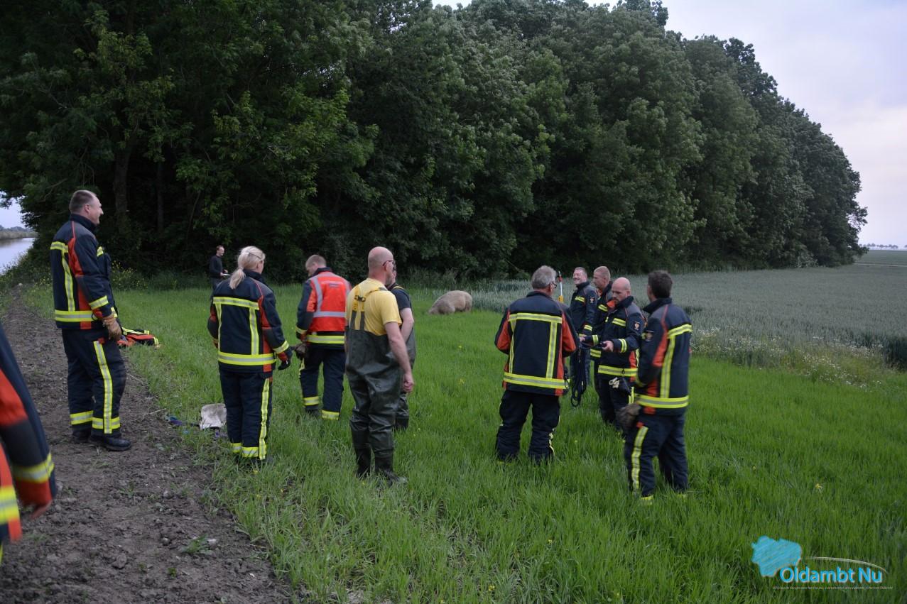 Nieuw Scheemda – De brandweer van Scheemda heeft zaterdagavond een varken van de verdrinkingsnood gered.