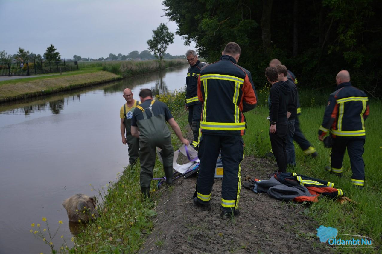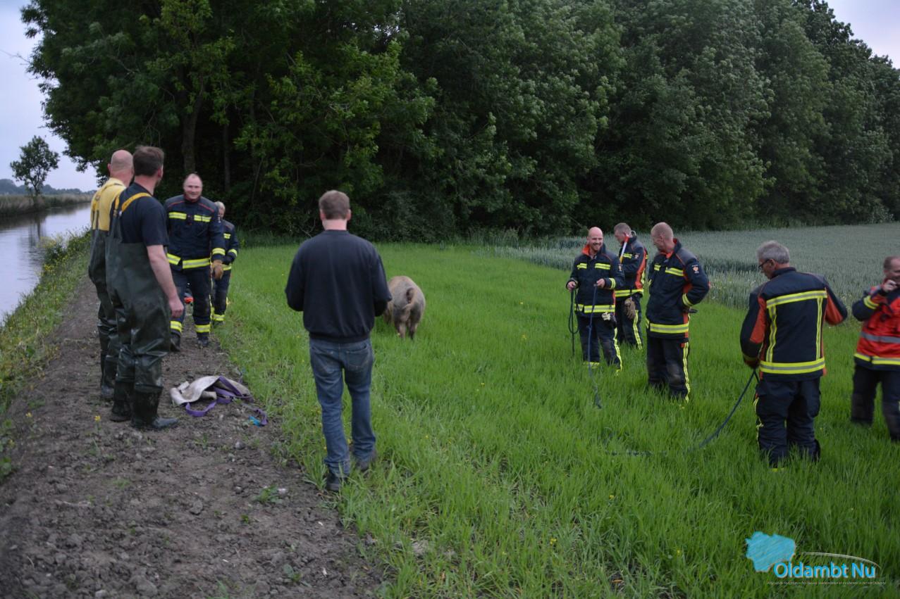 Brandweer redt varken van de verdrinkingsnood in Nieuw Scheemda