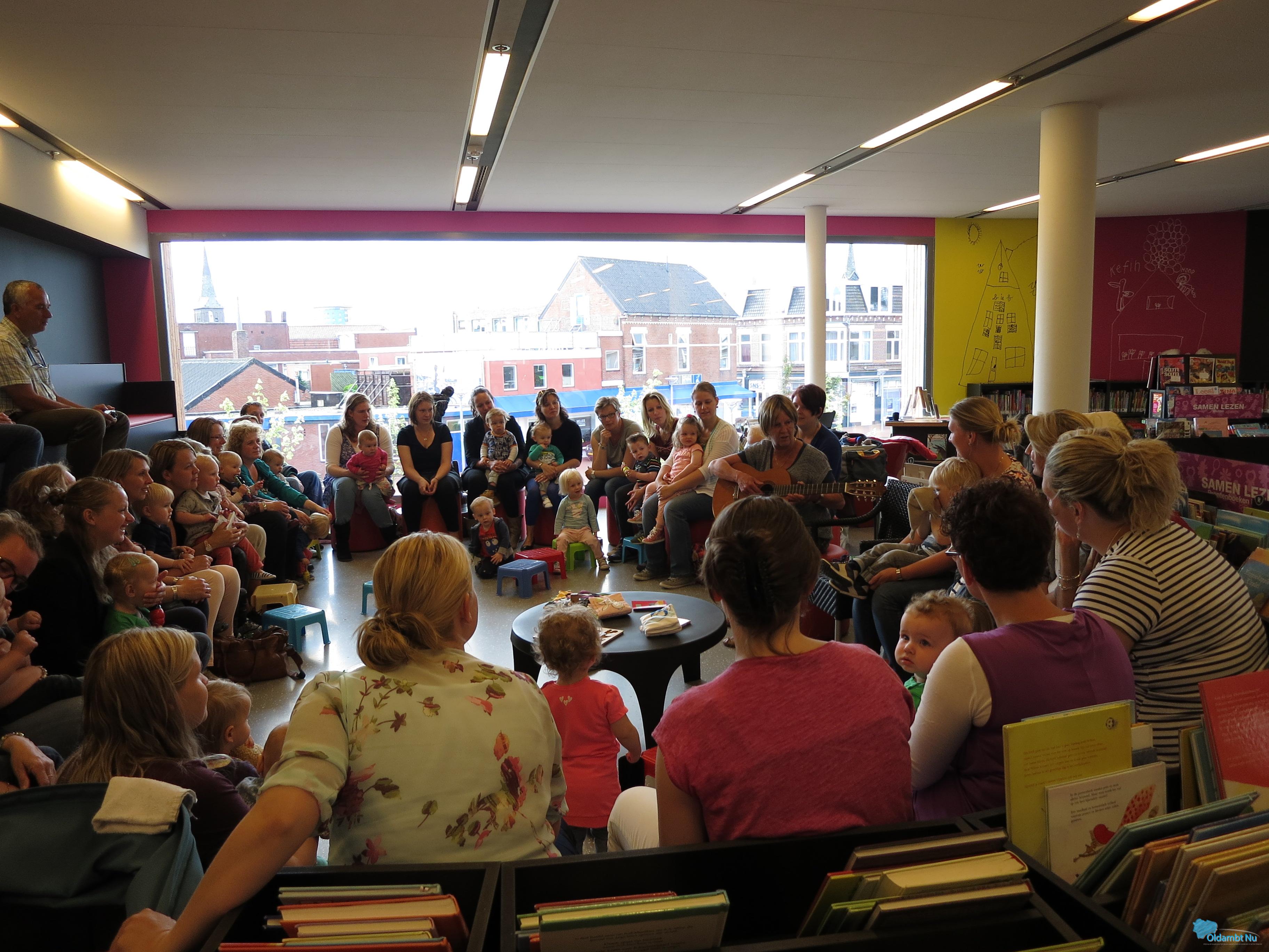 Winschoten – 26 jonge kinderen in de leeftijd van drie weken tot 30 maanden kwamen met hun ouders en/of grootouders naar Bibliotheek Winschoten voor Muziek op Schoot bij het baby- dreumescafé op de jeugdafdeling. Onder leiding van Greet Polman genoten ze van muziek en bewegen.