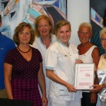 Winschoten – Op 10 augustus werd op locatie Lucas officieel het roze lintje aan de OZG uitgereikt voor goede borstkankerzorg. De dames De Vries (regio Friesland) en Schuurman (regio Groningen) reikten het kwaliteitskeurmerk uit namens de BorstkankerVereniging Nederland (BVN) aan nurse practitional Marja Dales. Beide dames zijn patientadvocates (erv aringsdeskundigen) die voor BVN contacten onderhouden met de noordelijke ziekenhuizen.