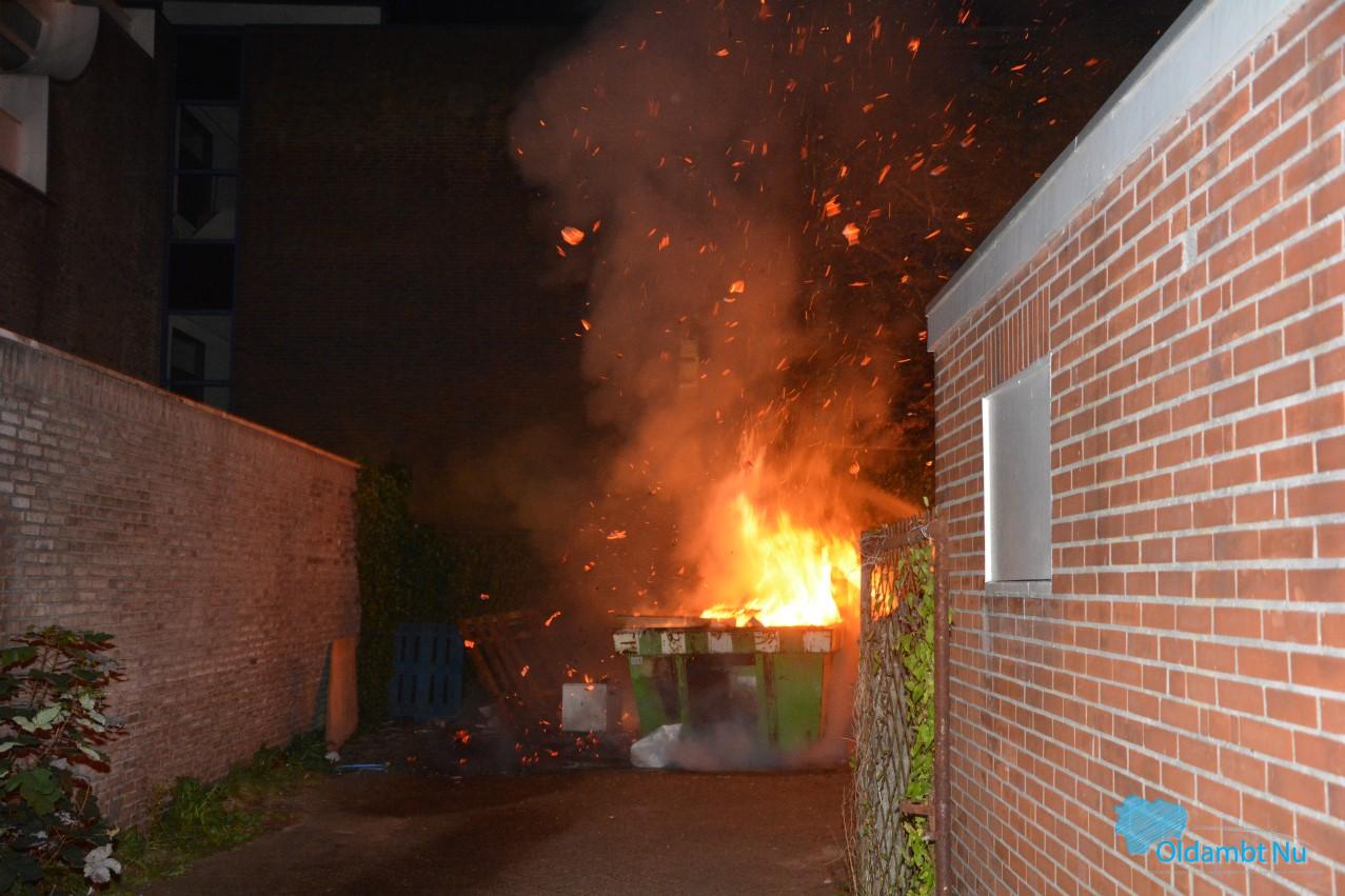 De aanrijdende brandweerlieden van Winschoten troffen een container in brand aan achter het gemeentehuis van de Gemeente Oldambt, deze stond vlak naast het pand. De brandweer heeft door een snelle inzet erger weten te voorkomen. De politie gaat uit van brandstichting.