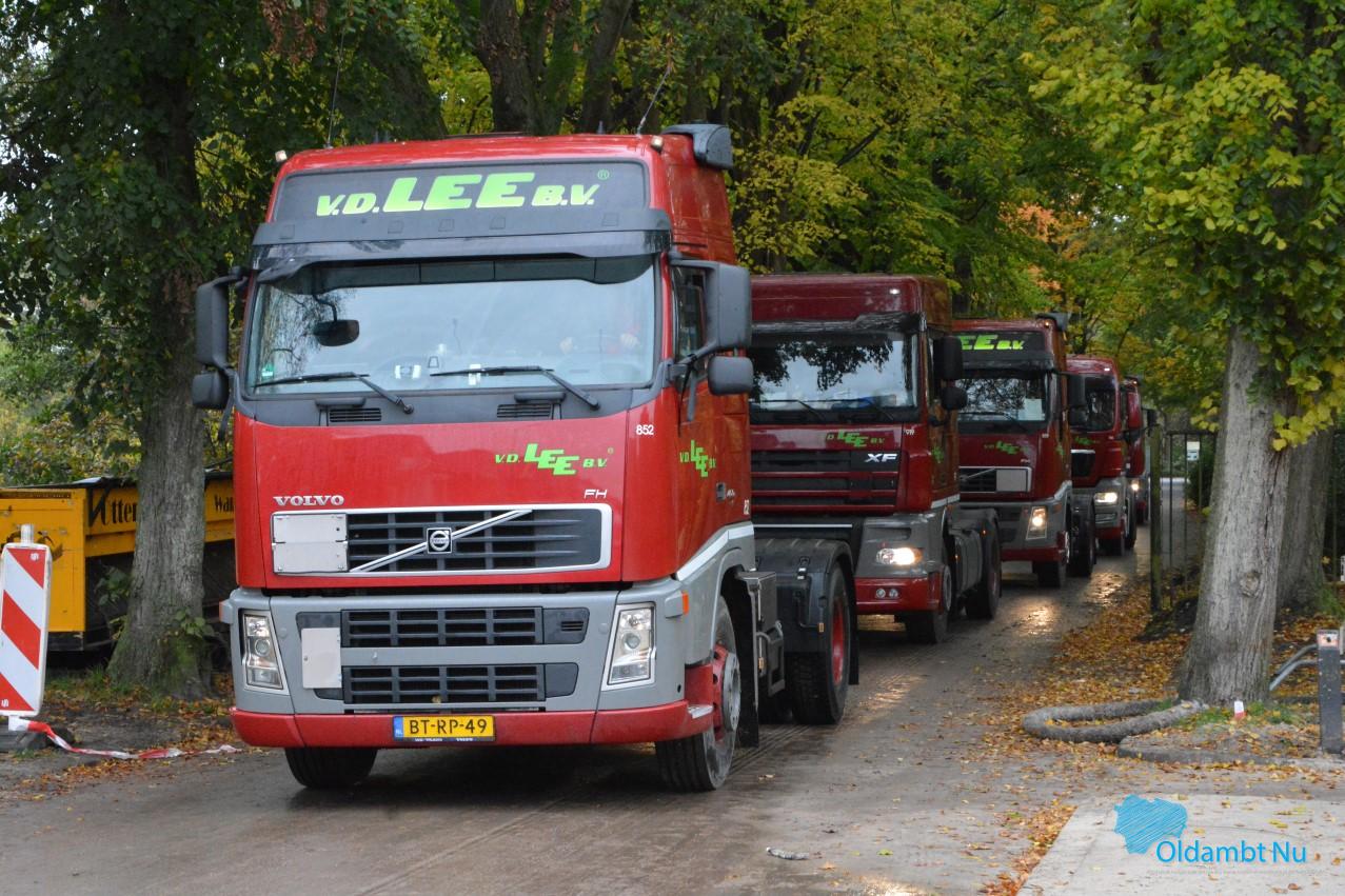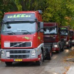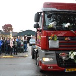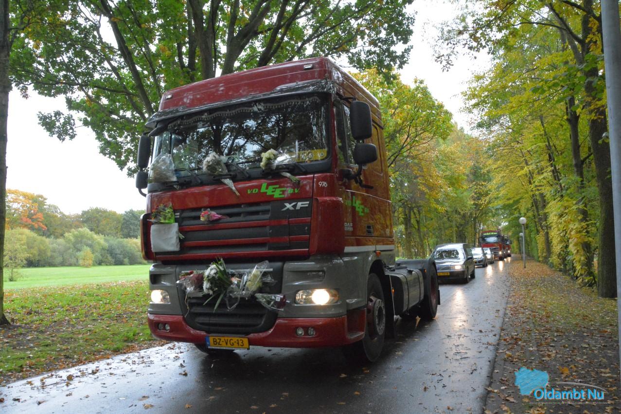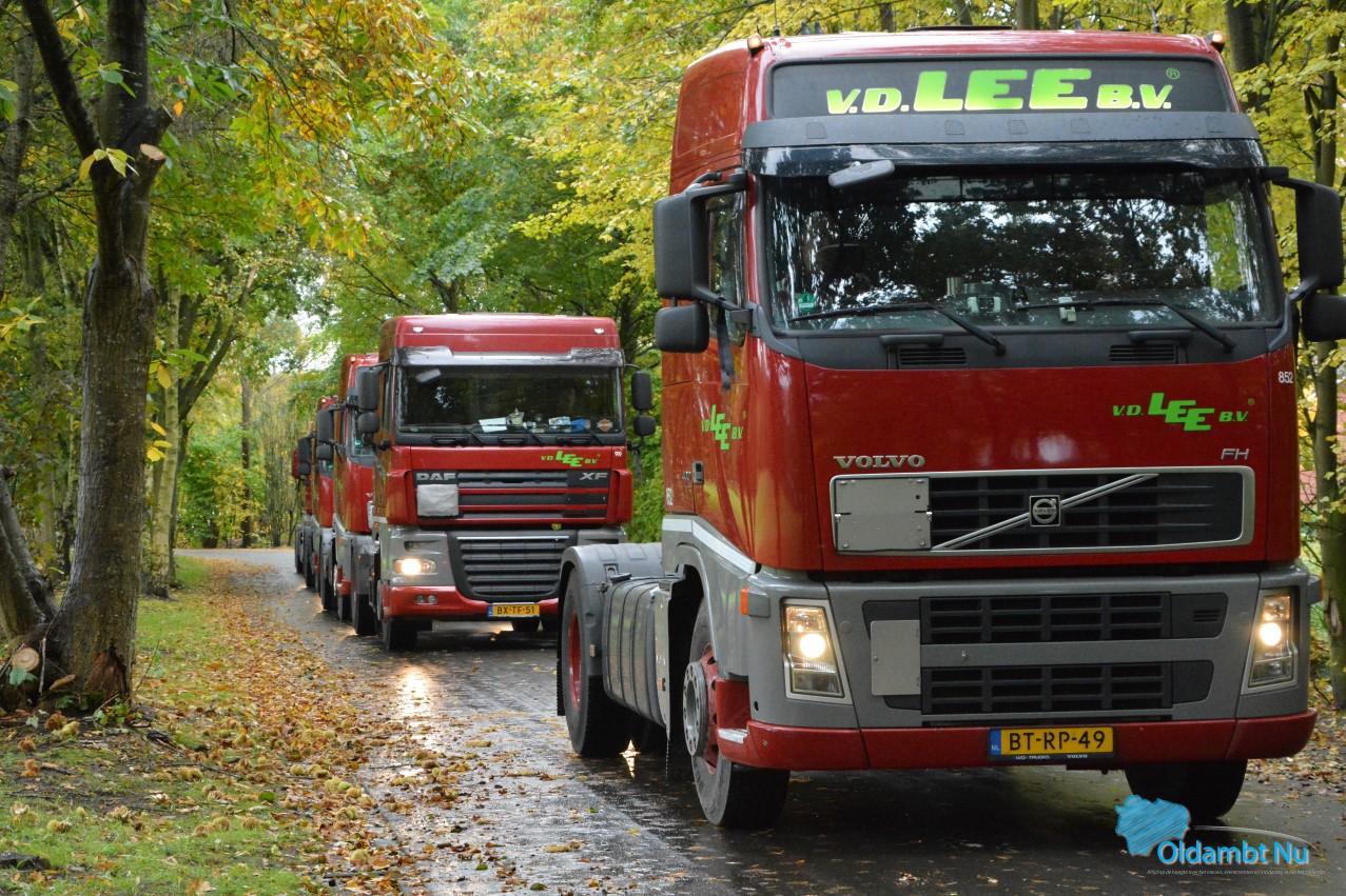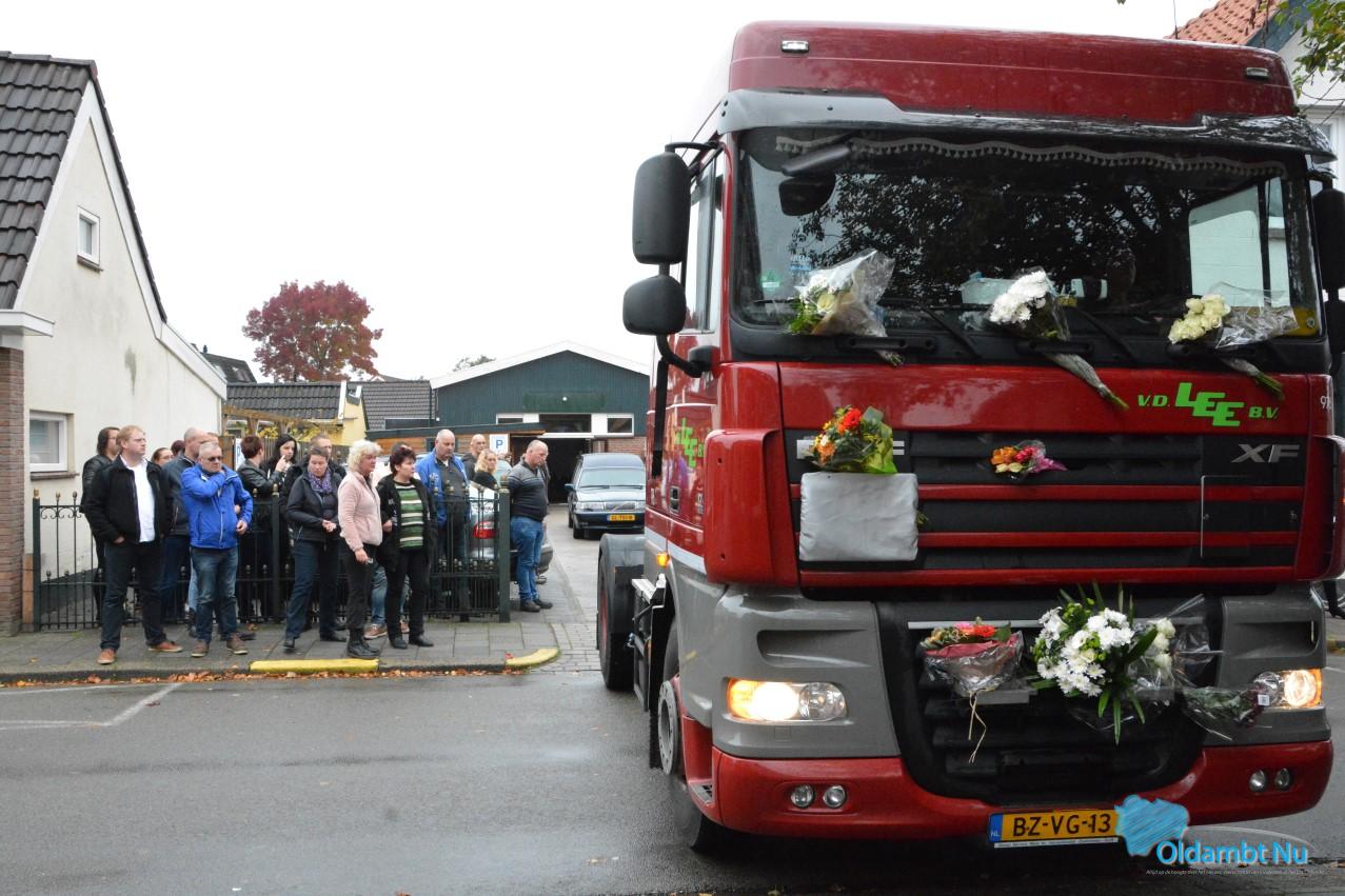 Winschoten – Door het centrum van Winschoten trok donderdagmiddag een bijzondere rouwstoet. Met zes vrachtwagens begeleidden vrachtwagenchauffeurs de uitvaart van hun omgekomen collega Theo Post.