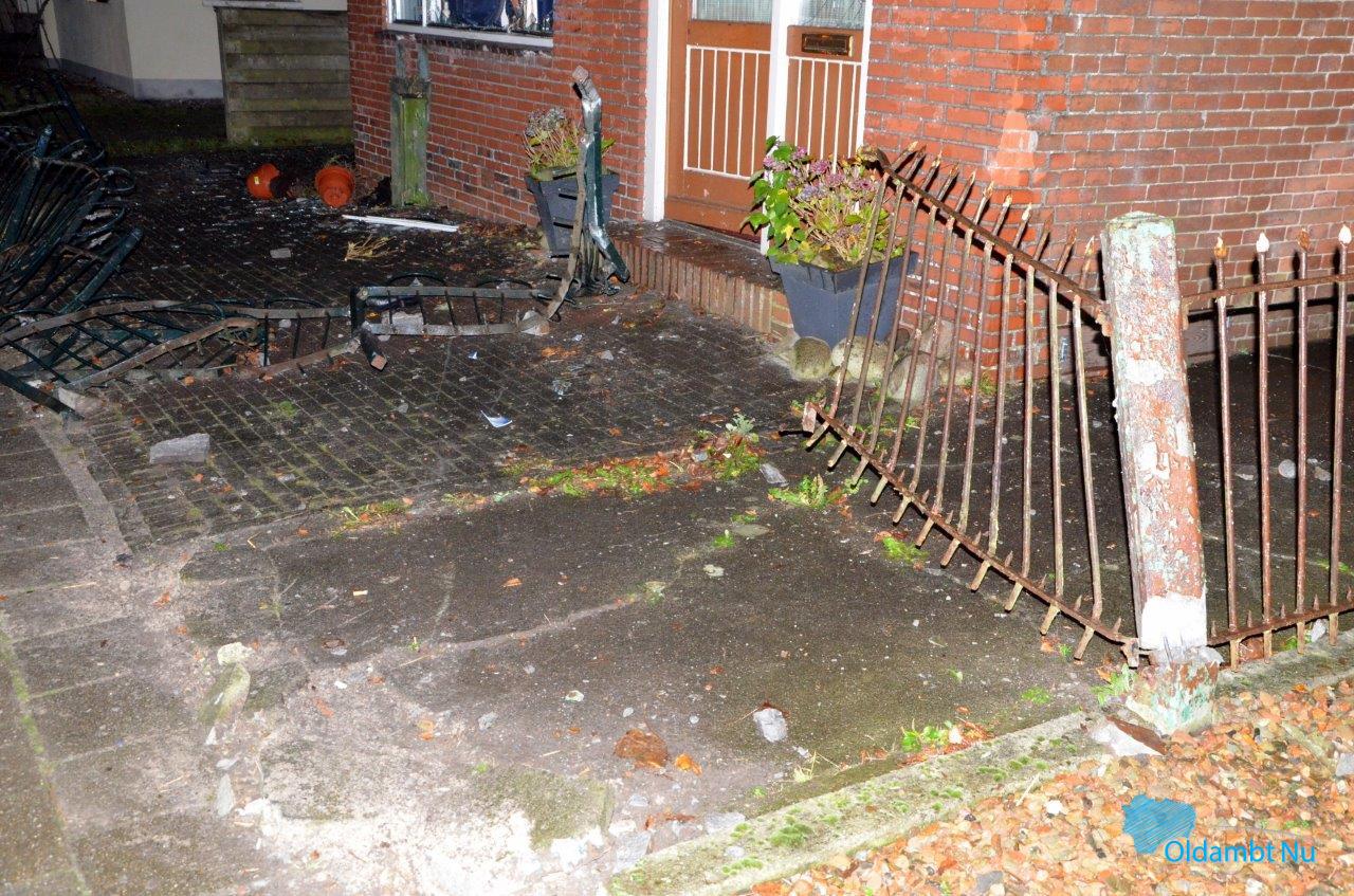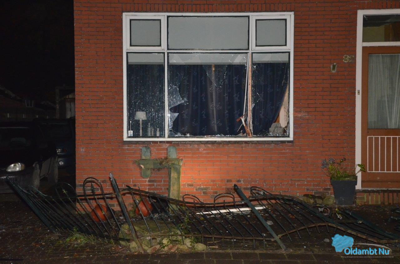 Een groot gedeelte van de ramen aan de voorkant van de woning liggen eruit. Ook het metalen hekwerk is totaal verwrongen net als die van de buren. De politie maakte van het ongeval een registratie. Een berger heeft de zwaarbeschadigde auto afgesleept. Een aannemer heeft ervoor gezorgt dat de ramen werden dichtgetimmerd.