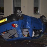 Auto raakt van de weg en wordt gelanceerd tegen woning Beerta