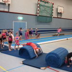 De ochtend werd natuurlijk begonnen met een warming up. Jeugd-lid Kyra Benthem werd onderscheiden met de Pier Hoekstra speld omdat zij zich op een positieve manier inzet voor de vereniging. De peuters en kleuters begonnen met een leuk dansje. Vervolgens lieten de gymnasten hun kunsten zien op de verschillende toestelbanen en konden ze zich uitleven op de twee opblaasbare tumblingbanen. Ook werd er kennisgemaakt met de ritmische sportgymnastiek.