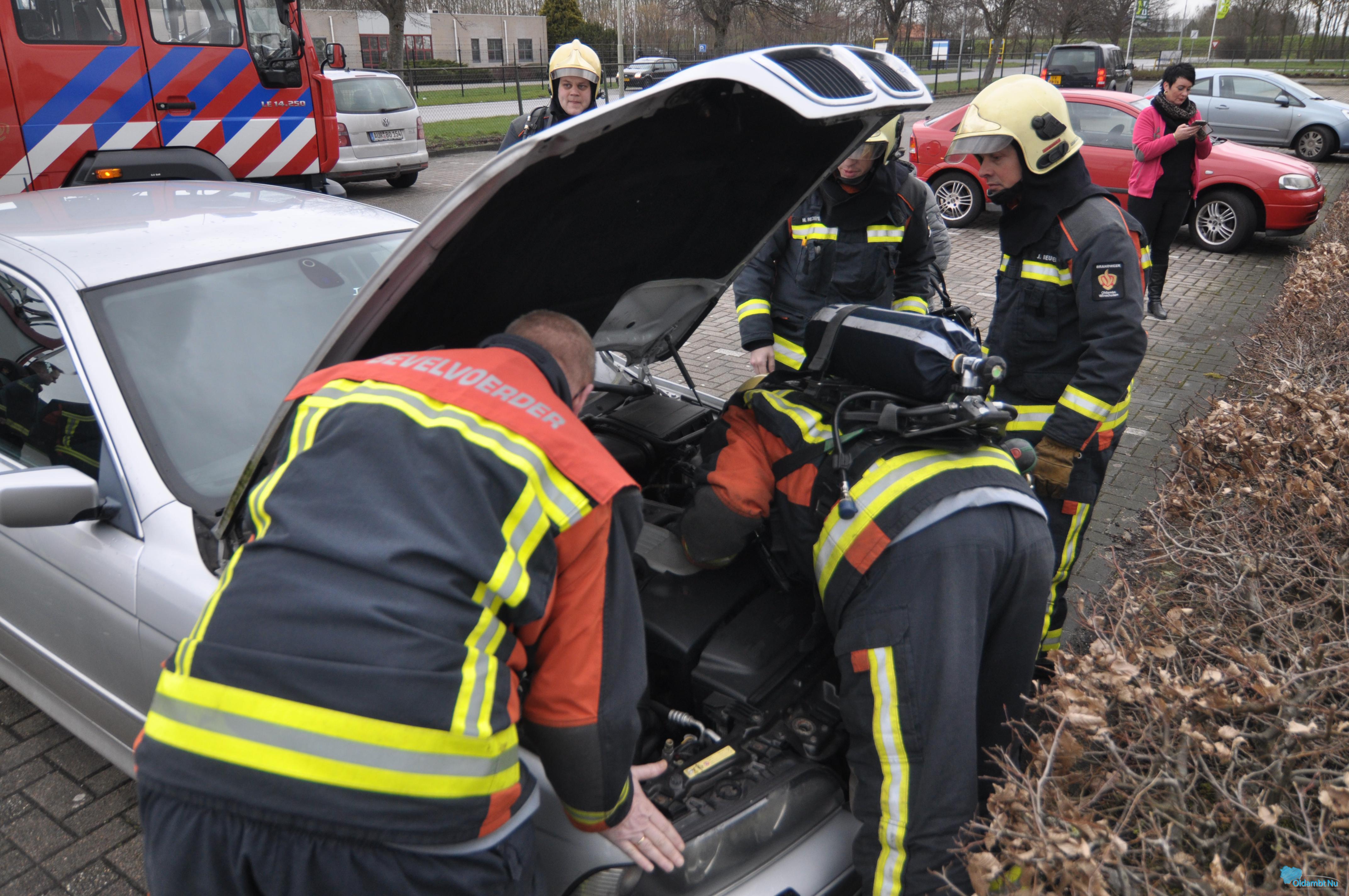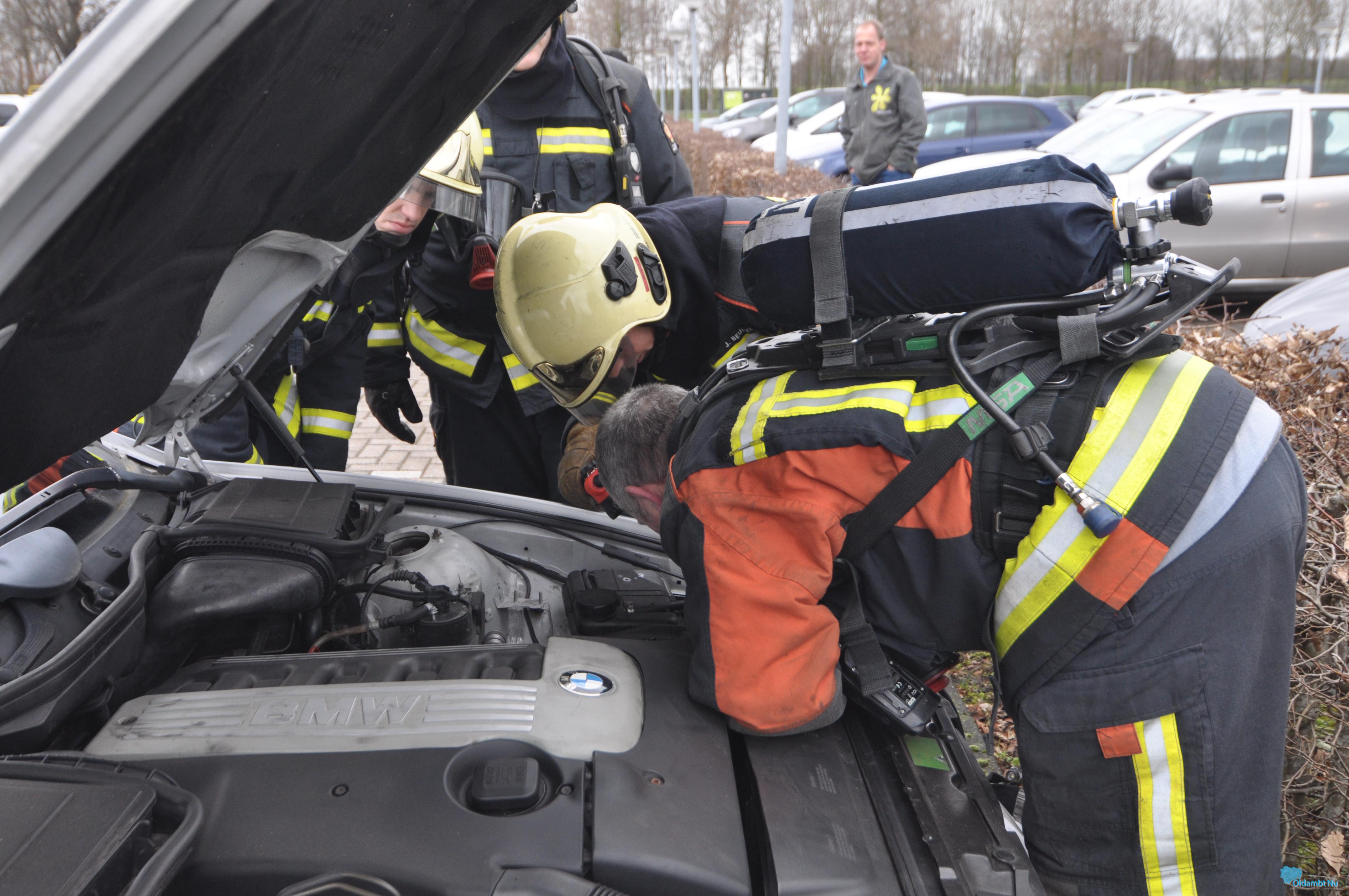 Een voorbijganger zag dat er rook onder de motorkap weg kwam en alarmeerde meteen het personeel. Zij zijn met een brandblusser naar buiten gelopen en hebben vervolgens de brandweer gebeld. De brandweer heeft een nacontrole uitgevoerd en kon na onverichte handelingen retour naar de kazerne.