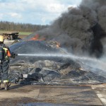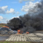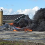 Ter plekke bleek het zaagsel /pulp onder het landbouwplastic aan het broeien te zijn. Uiteindelijk kreeg het plastic wat ervoor zorgde dat het zaagsel niet wegwaaide vlam. Het verbrande landbouwplastic en de banden die er tegen aan lagen zorgden voor vele rookontwikkeling, wat vanaf de A7 goed te zien was.