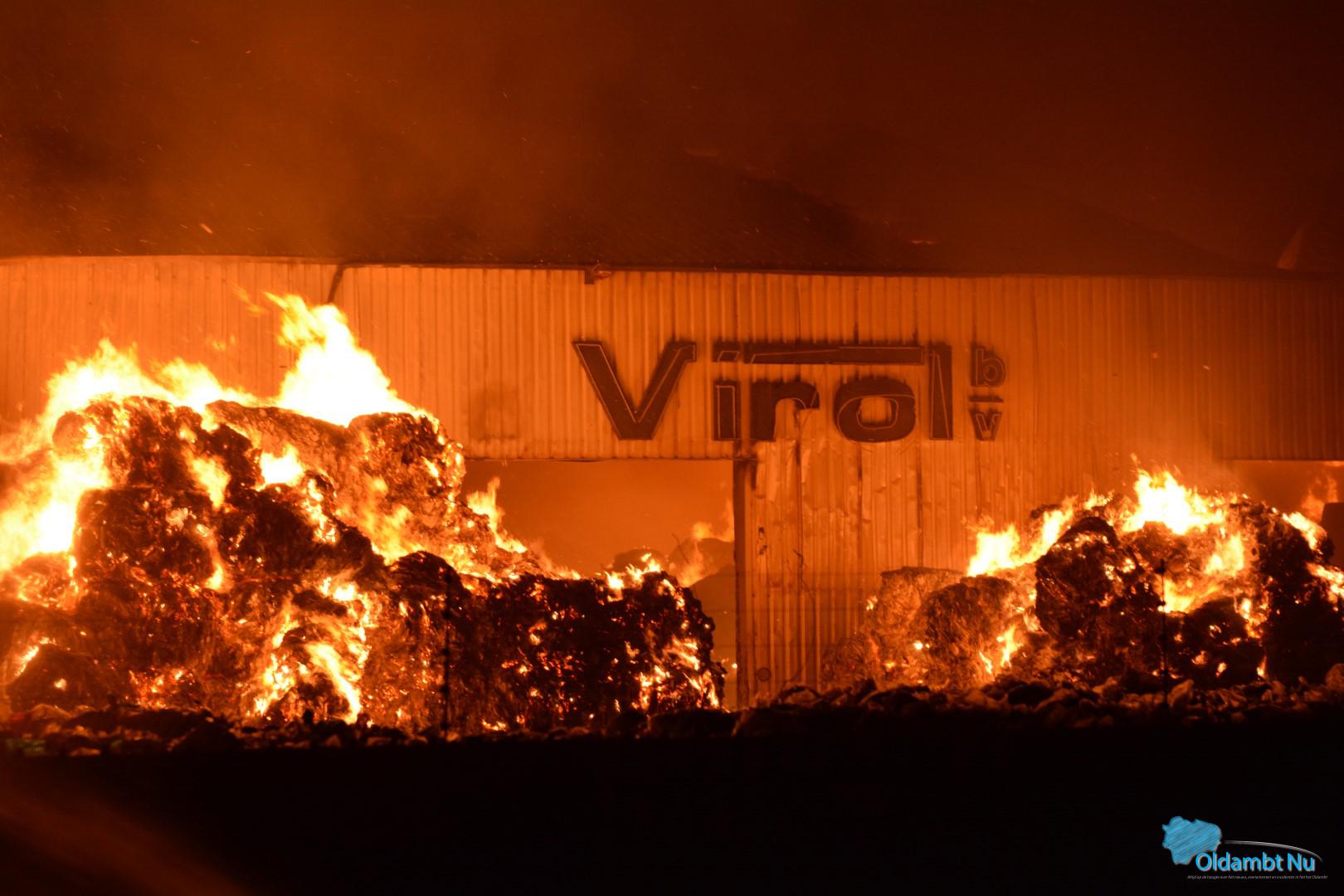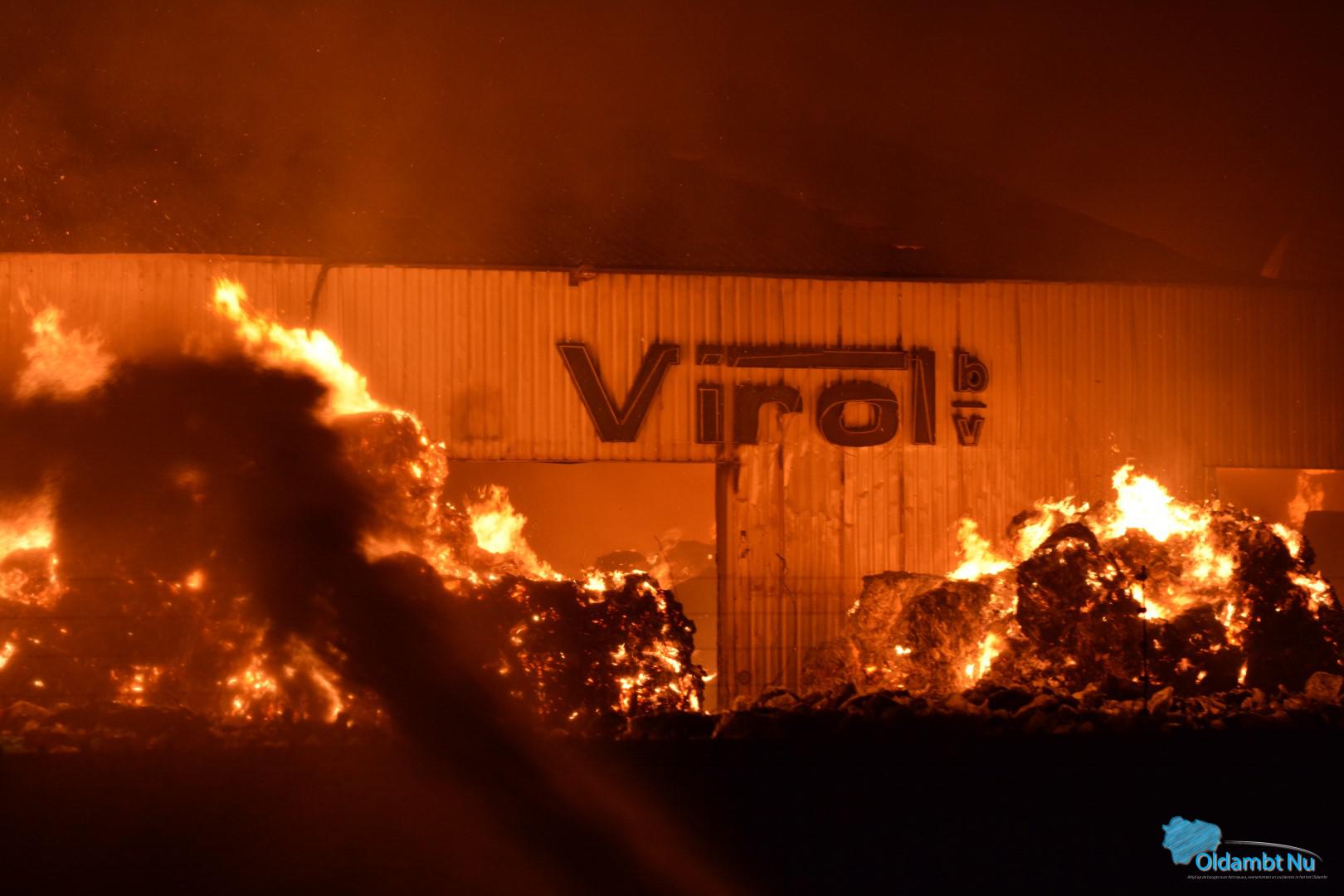 De brand bij Virol brak dinsdagavond uit en woedt sindsdien in twee papierloodsen. Pogingen om de kantoorpanden te behouden zijn tot dusver gelukt. De gebouwen hebben wel veel rook- en waterschade opgelopen.De brand in de papierloodsen wordt bewust niet geblust om nog meer rookontwikkeling te voorkomen.Rookkolom
