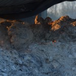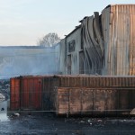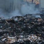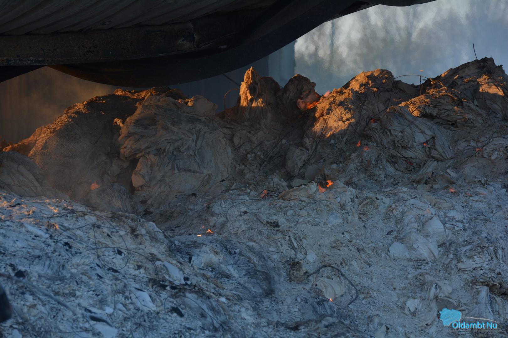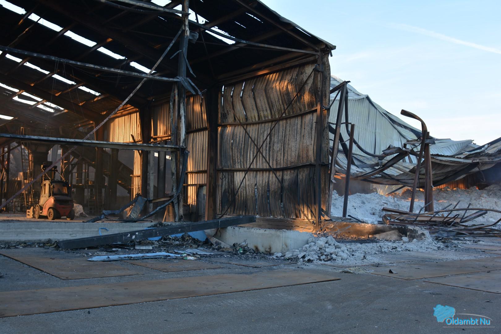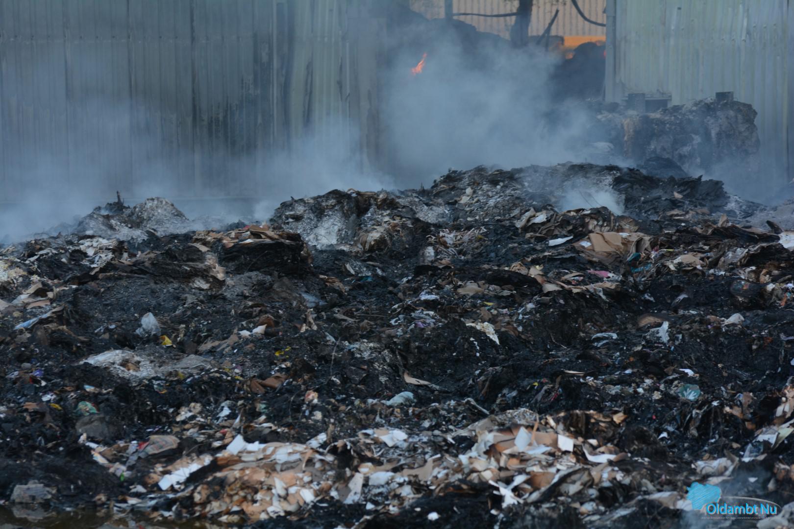 De brandweer stopte woensdag ook al even met blussen, om de bluswerkzaamheden donderdag weer op te pakken. Nu wacht de brandweer op de sloophamer. ‘Op het buitenterrein is alles geblust’, zegt Heinen nu. ‘Het enige papier wat nog ligt te smeulen ligt in de loods. We laten eerst het bedrijf de loodsen helemaal slopen en daarna gaan we verder.’