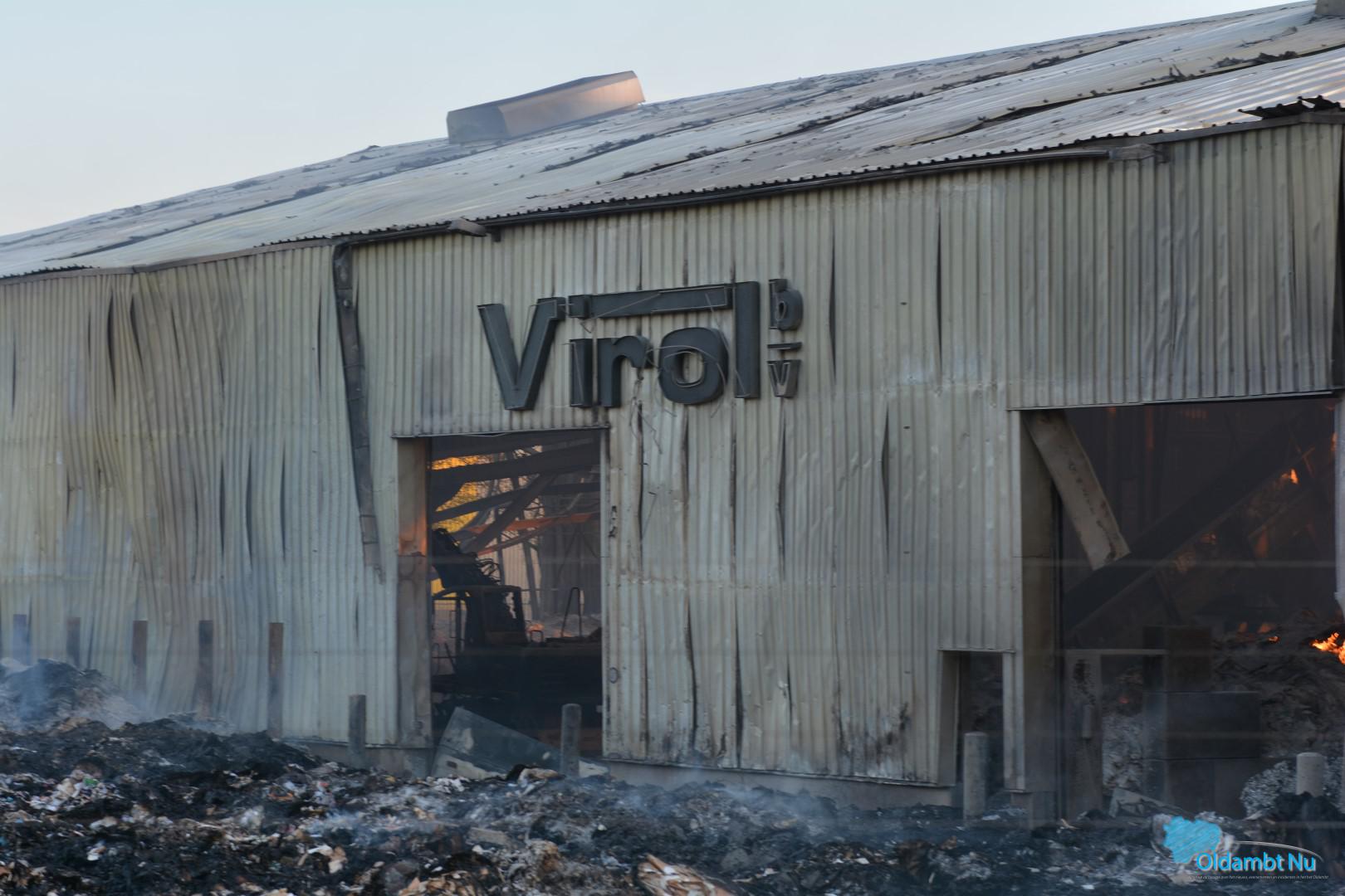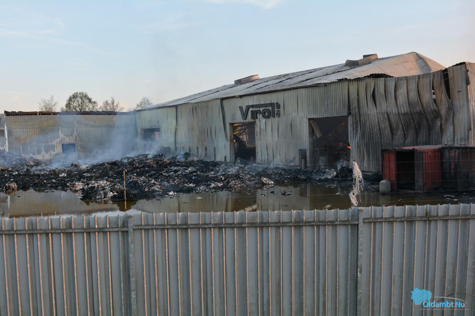 Scheemda – Eerst moeten de schuren gesloopt worden, pas dan kan de brandweer de laatste smeulende balen papier bij Virol Recycling blussen. Dat laat brandweerwoordvoerder Jop Heinen aan RTV Noord weten. De verwachting is dat het laatste vuur dit weekend is gedoofd.