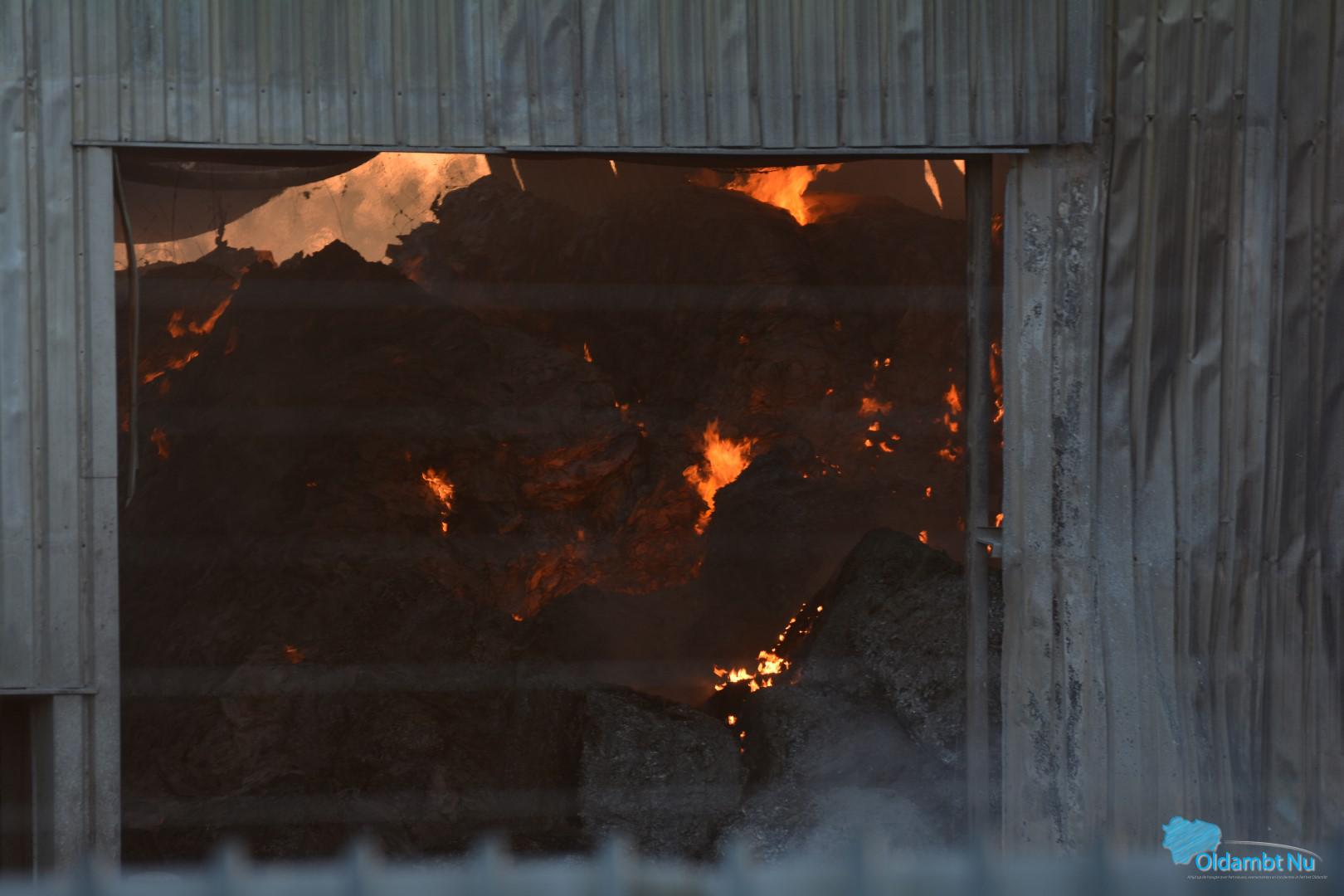 De hulpdienst heeft daarom besloten haar werkwijze aan te passen. ‘ Nu zijn we voorzichtig aan het blussen. Ondertussen voeren we het materiaal wat geblust is af.’