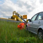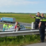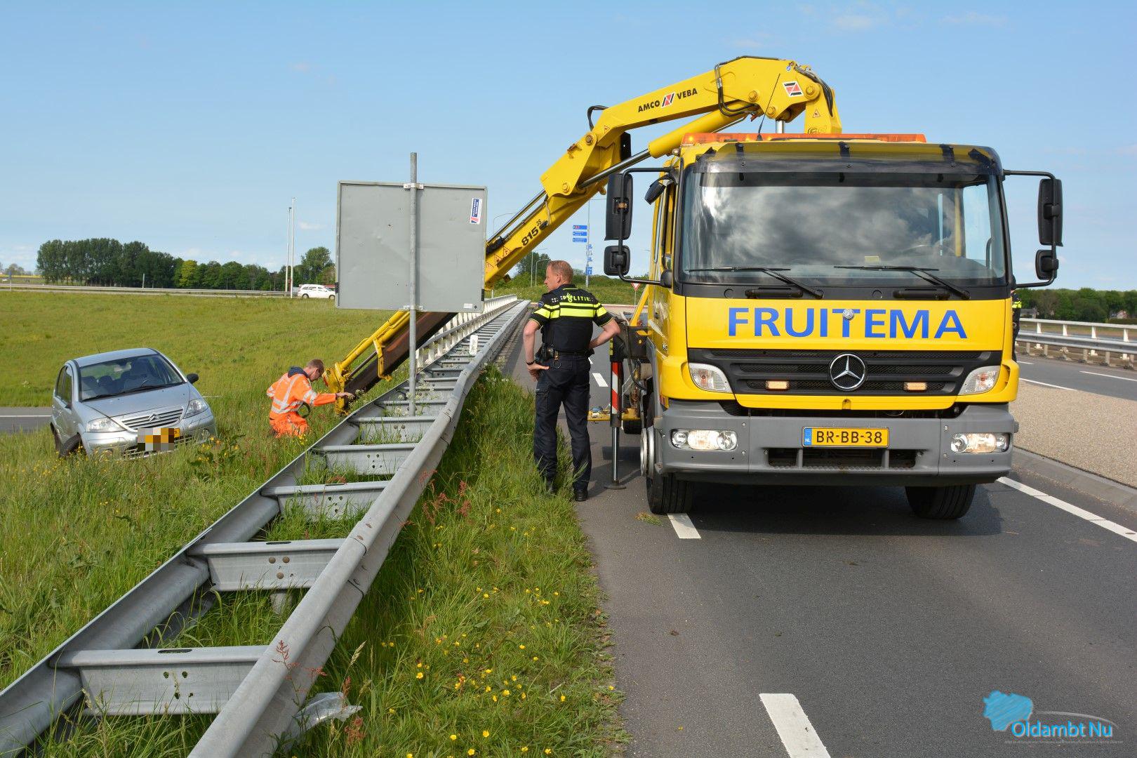 Dit gebeurde nadat een automobilist de macht over het stuur kwijt raakte en op de verkeerde weghelft terecht kwam, hierna is de auto gelanceerd door middel van de vangrail en kwam vervolgens tot stilstand op het talud.