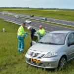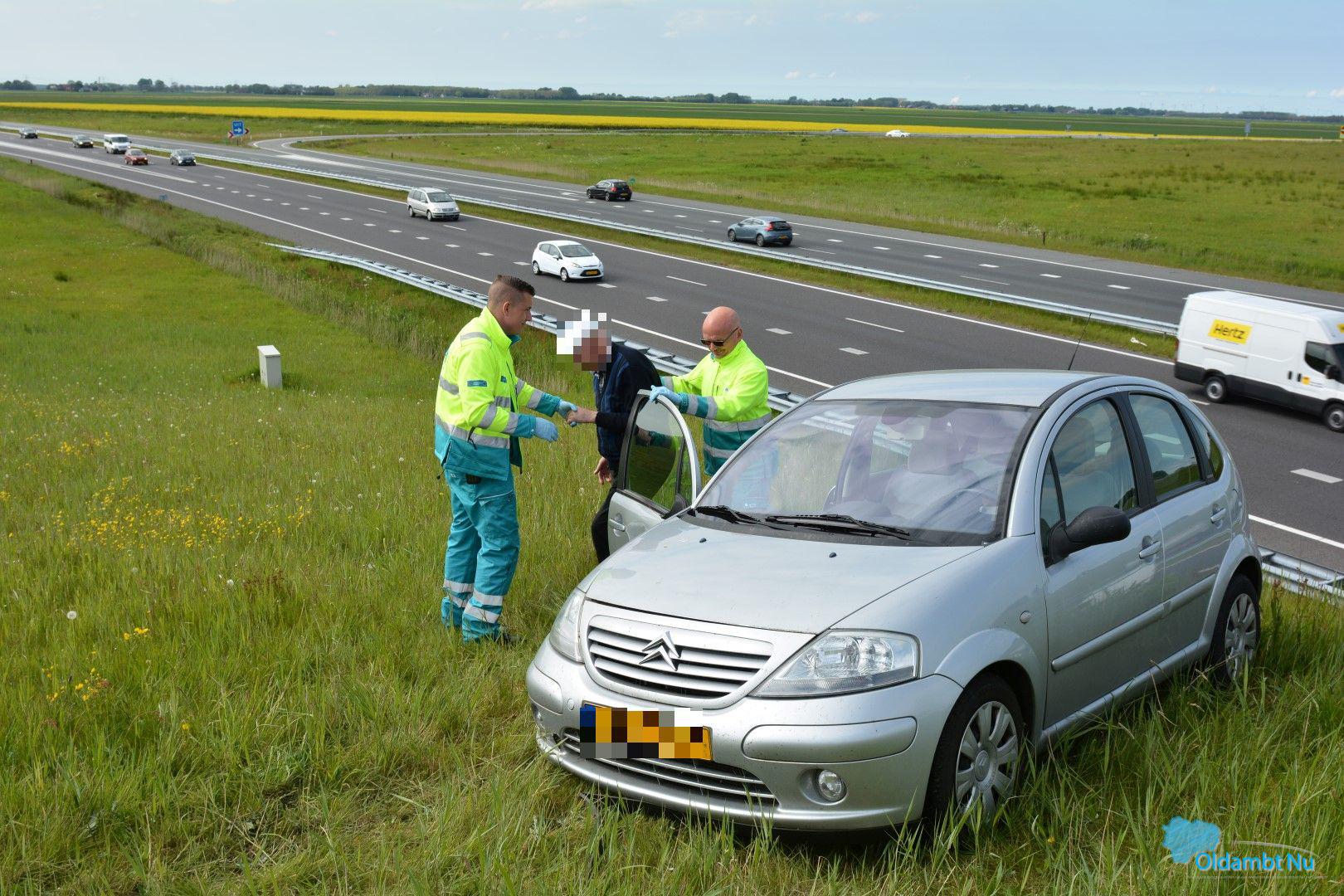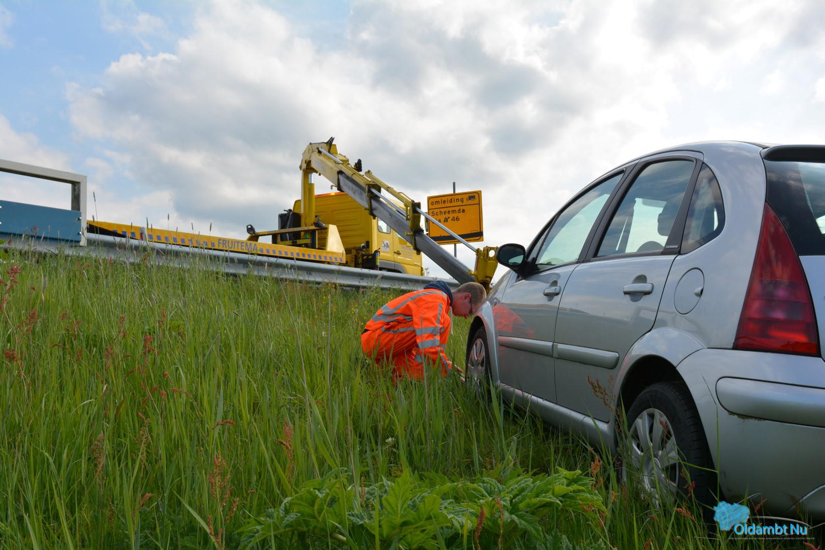 De beide inzittenden hebben een engeltje op hun schouders gehad, als het voertuig enkele meters verder kwam de auto na aan forse afdaling naast de A7 in de sloot terecht.