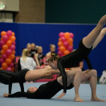 Zondag toonden de teams in de hogere niveau’s hun oefeningen aan het publiek en de jury in de Eextahal. Kyra Benthem en Denise Hollander van GV Bato behaalden het zilver in de categorie duo D-lijn. Het goud ging overtuigend naar Magret Huisman en Michelle van der Laan van het Turninstituut.