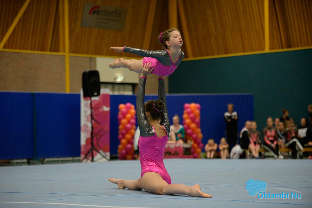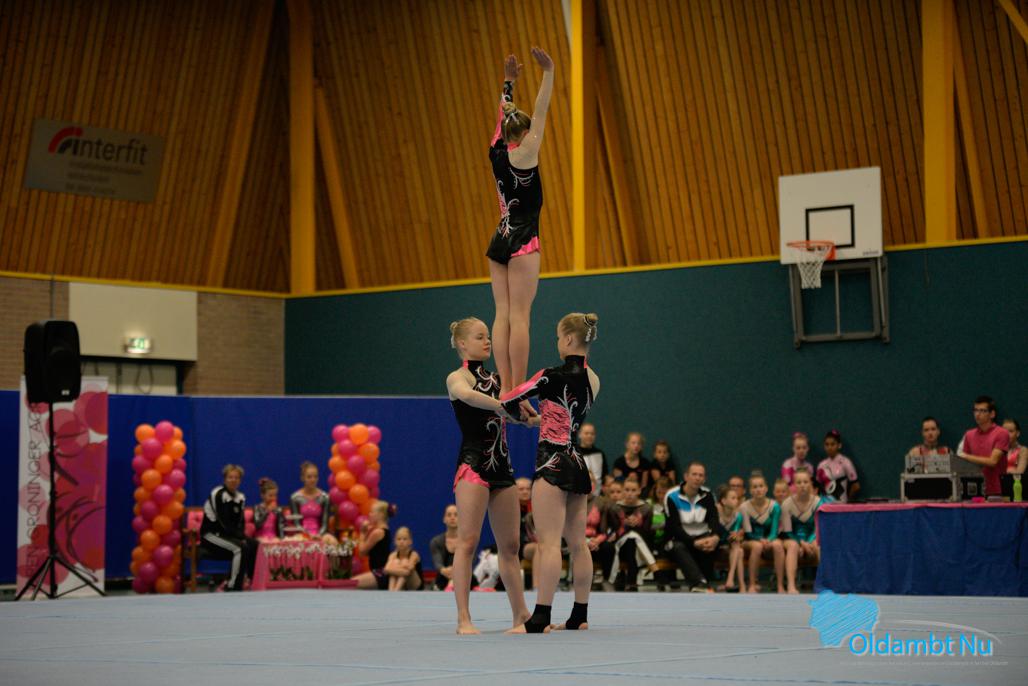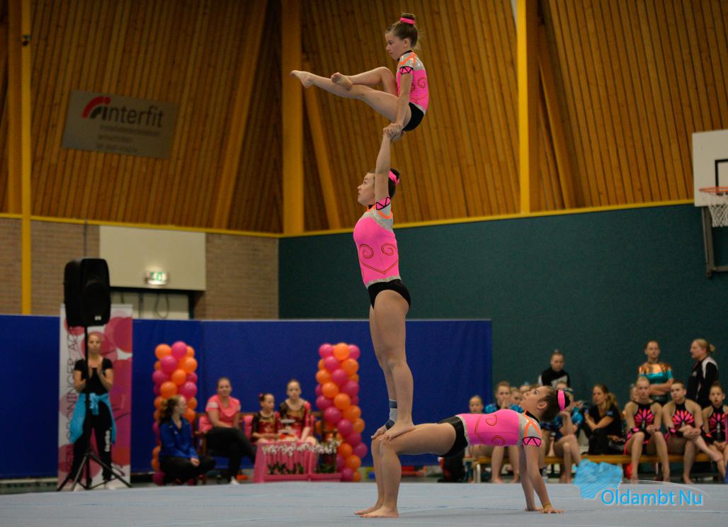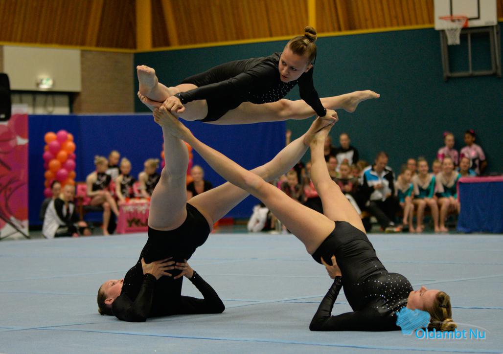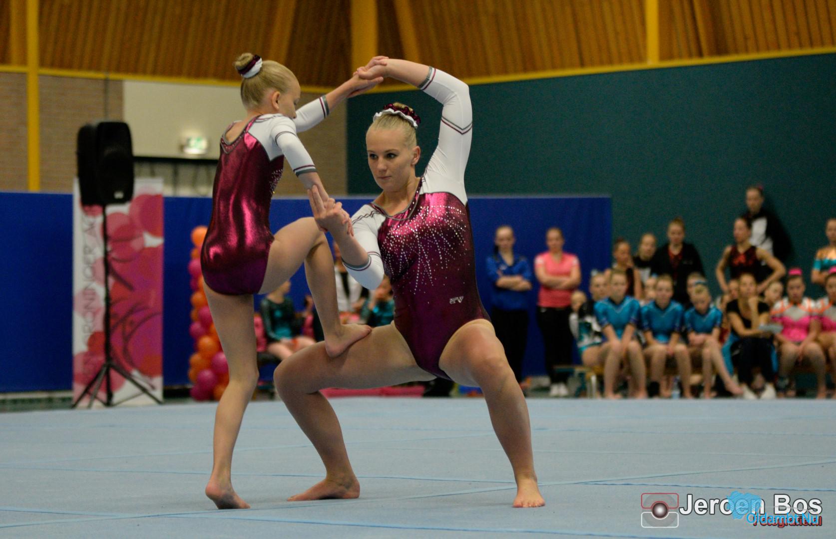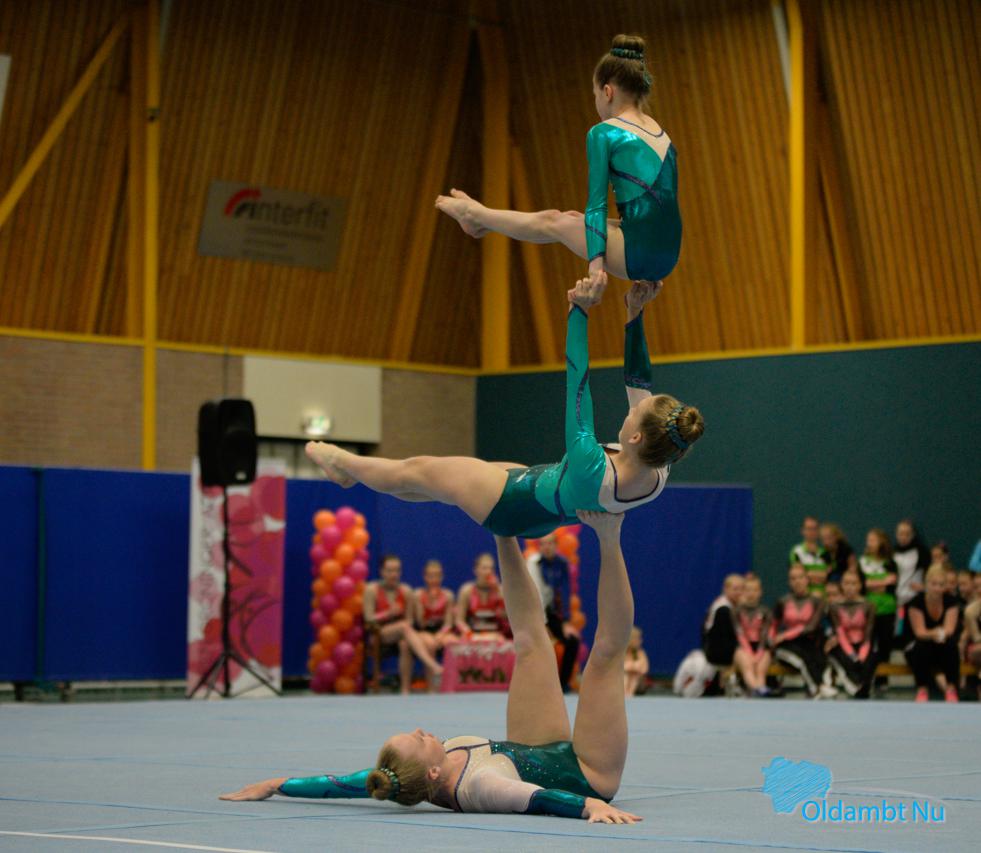 Zondag toonden de teams in de hogere niveau’s hun oefeningen aan het publiek en de jury in de Eextahal. Kyra Benthem en Denise Hollander van GV Bato behaalden het zilver in de categorie duo D-lijn. Het goud ging overtuigend naar Magret Huisman en Michelle van der Laan van het Turninstituut.