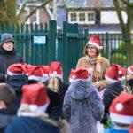 De leuke kerstmutsjes waren door de ouderraad geregeld. De exacte opbrengst wordt later bekend gemaakt.