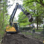 Tevens moesten er restanten van gekapte bomen worden verwijderd om een doorgang voor de rupskraan te creëren.