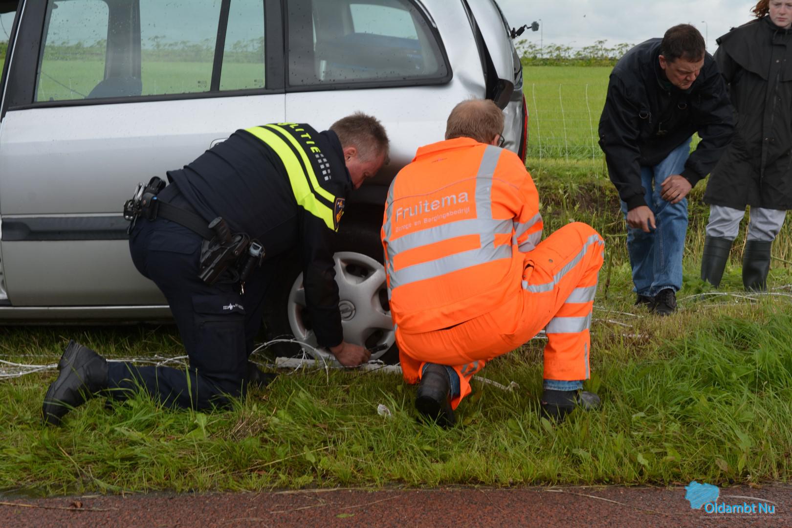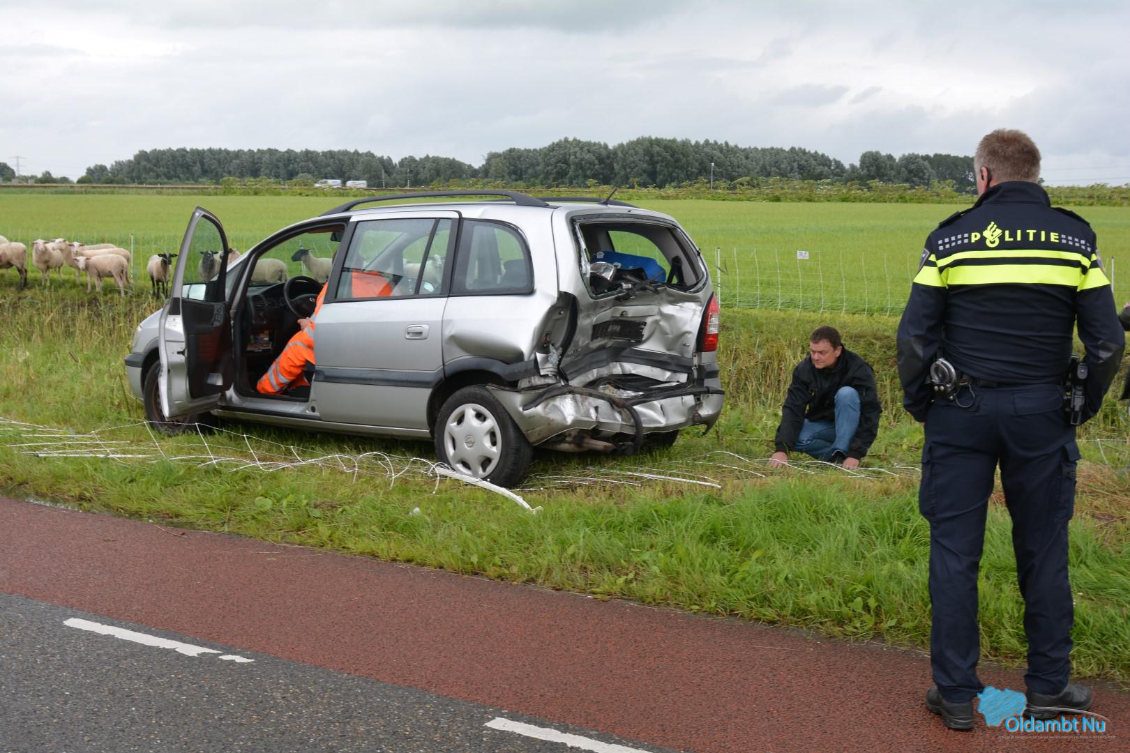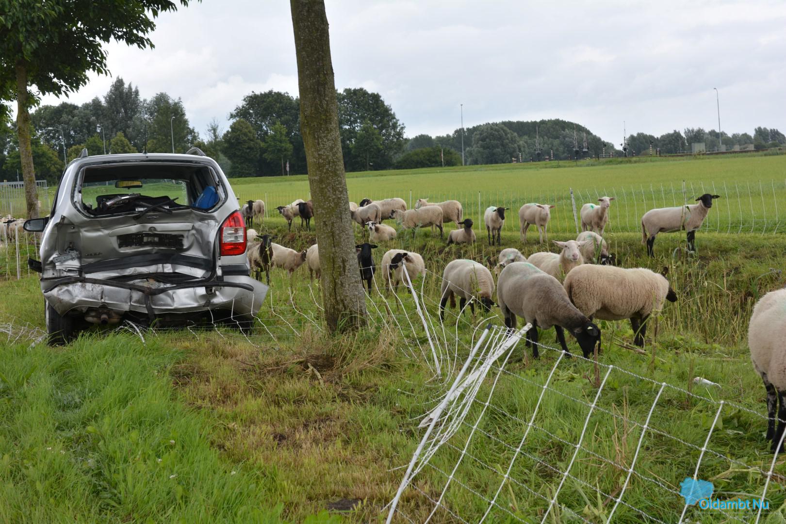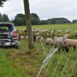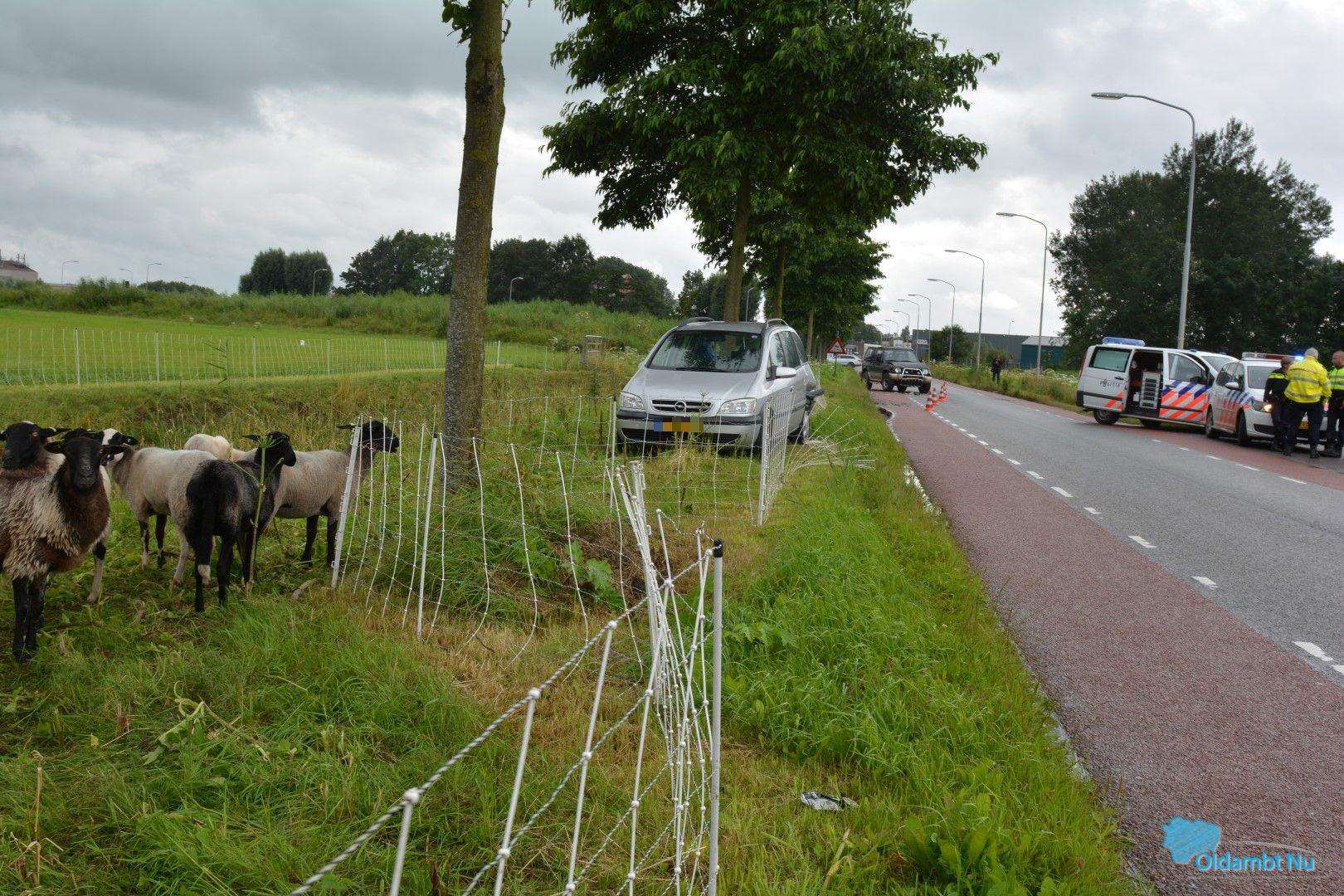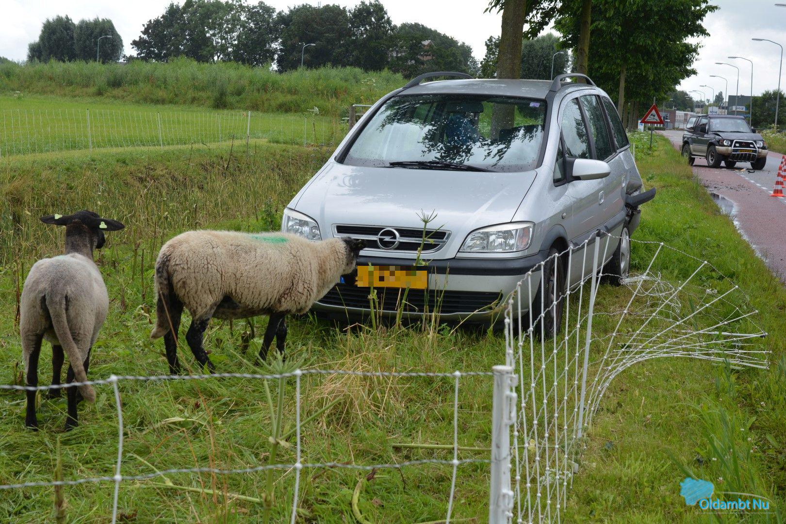 Auto belandt tussen de schapen na ongeluk in Winschoten
