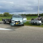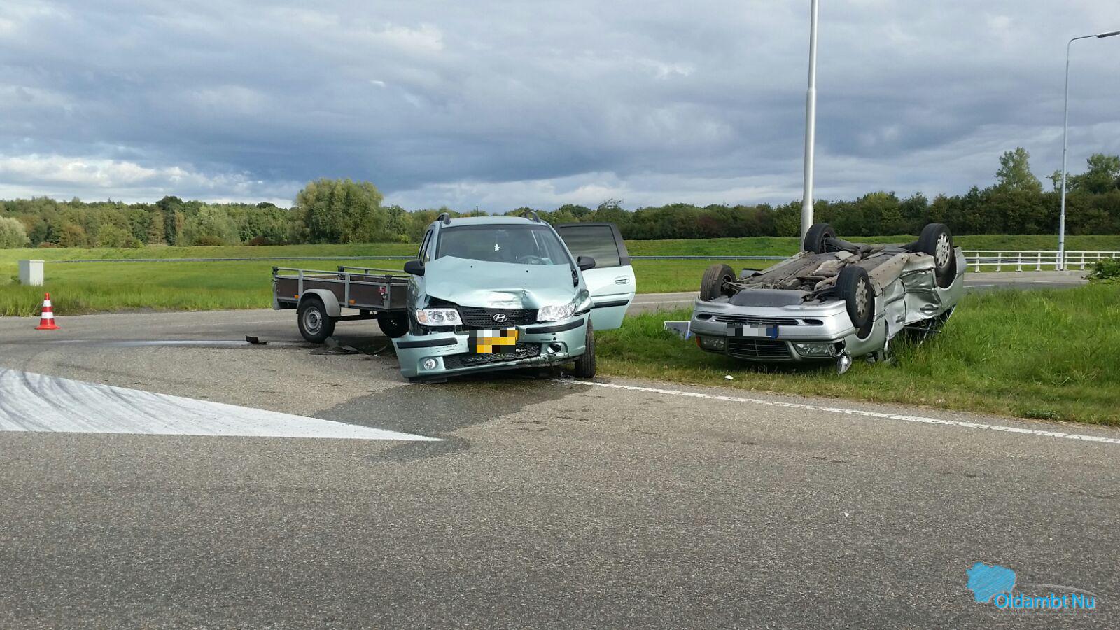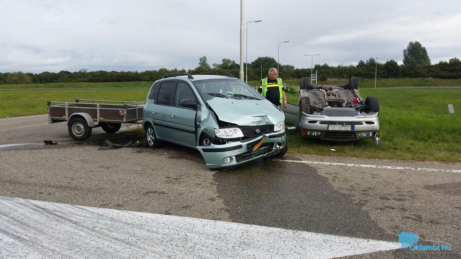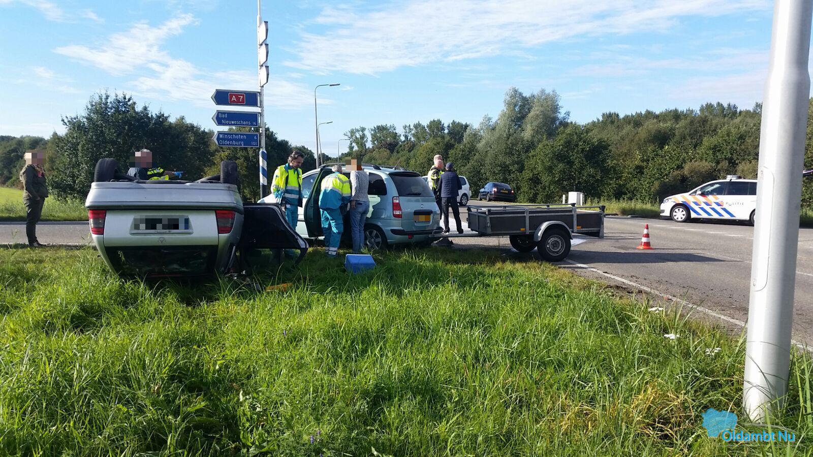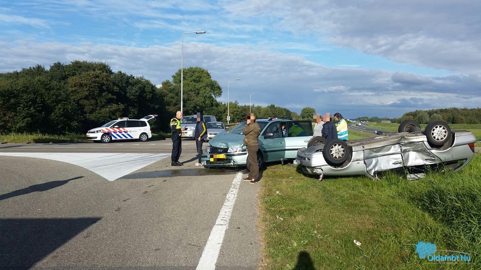 Heiligerlee – Op de afrit van de A7 bij Heiligerlee zijn zaterdagochtend twee auto’s op elkaar gebotst. Daarbij is één van de voertuigen op de kop beland.
