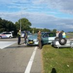 Auto belandt op de kop na ongeluk op afrit Heiligerlee