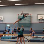 De ochtend werd natuurlijk begonnen met een super leuk warming up dansje. Vervolgens lieten de gymnasten hun kunsten zien op de verschillende toestelbanen en konden ze zich uitleven op de twee opblaasbare tumblingbanen. Ook werd er kennisgemaakt met de ritmische sportgymnastiek.