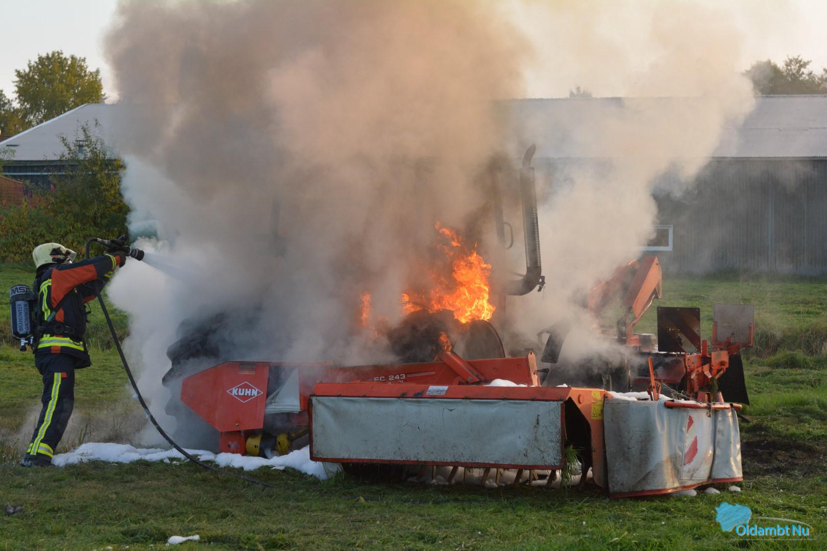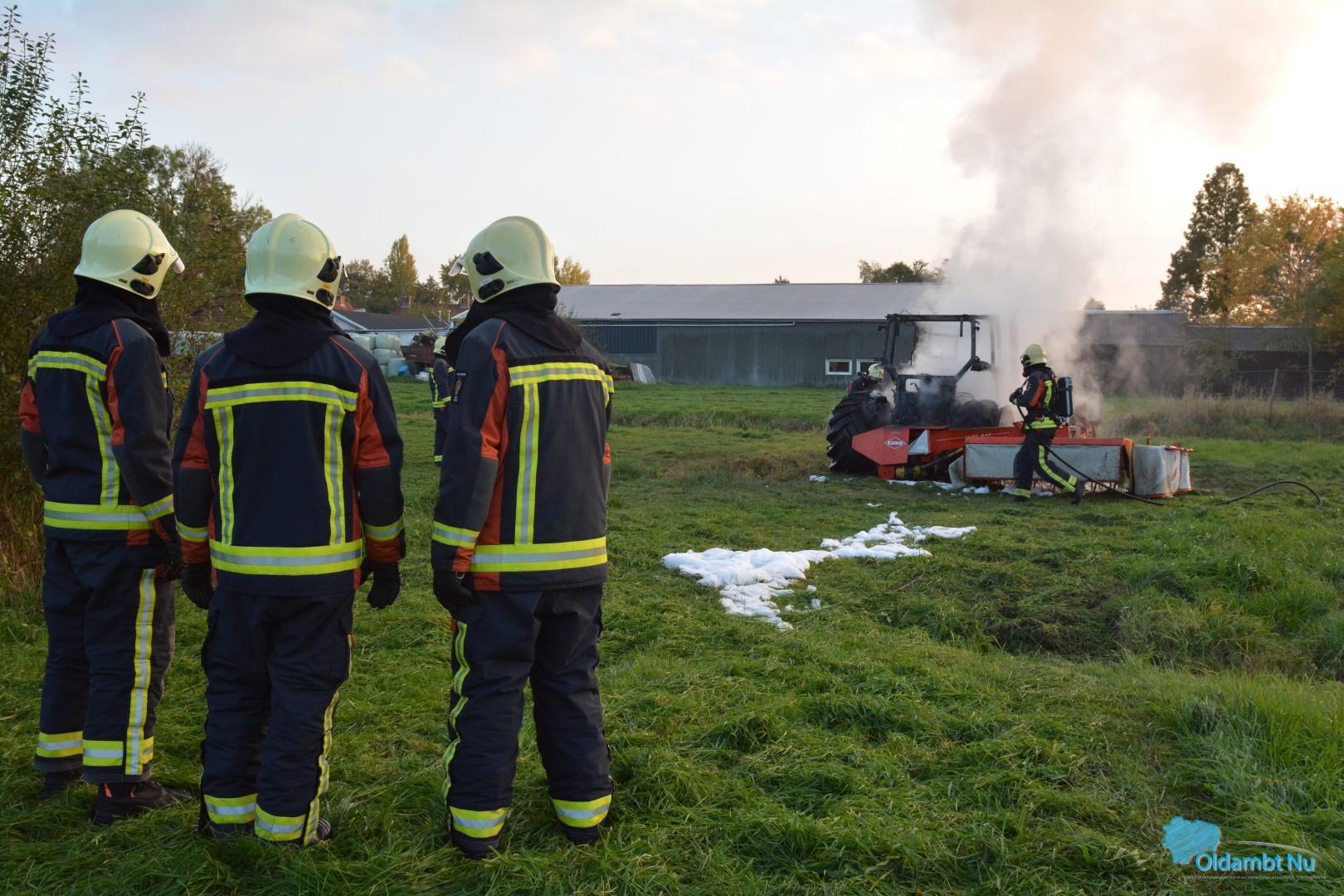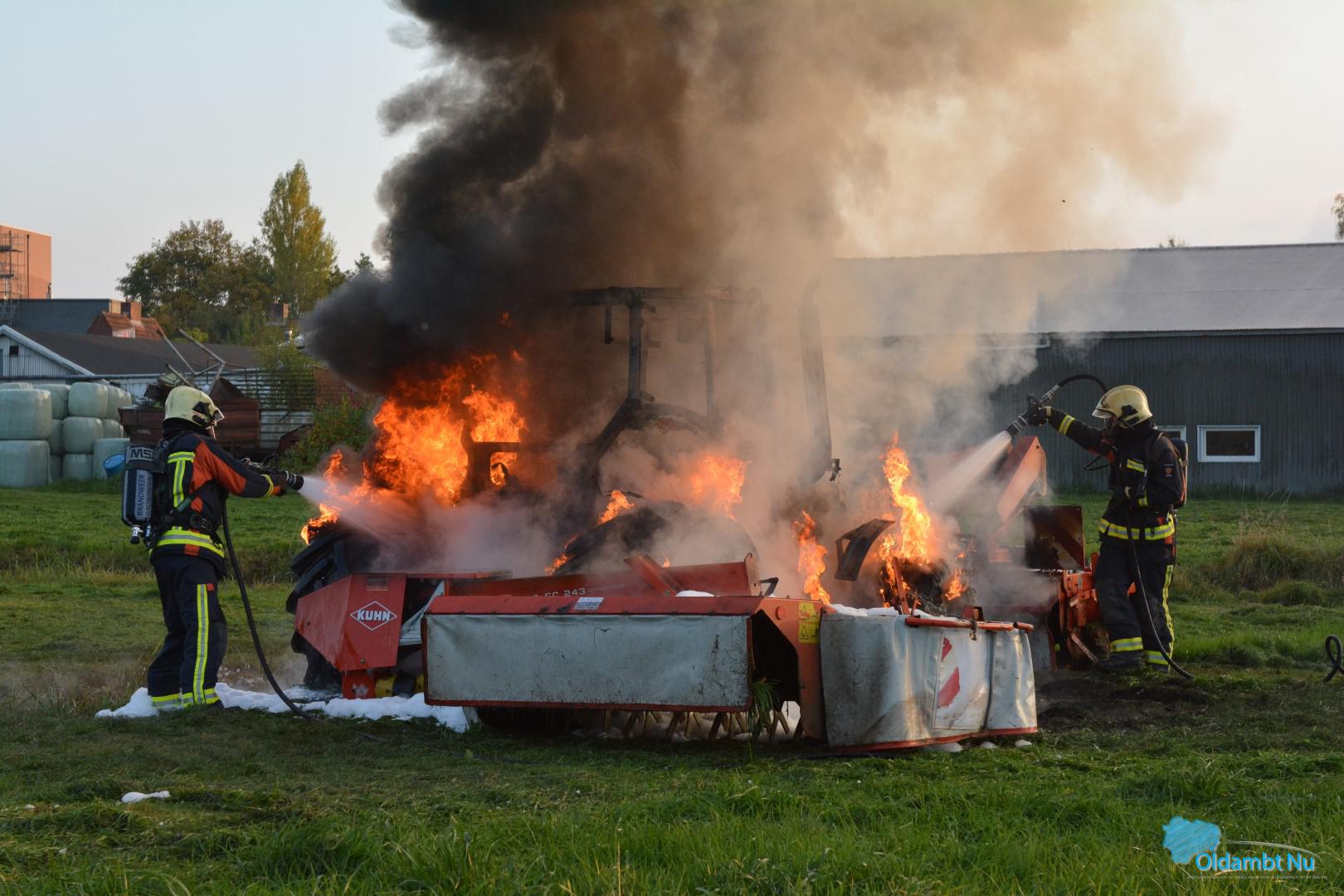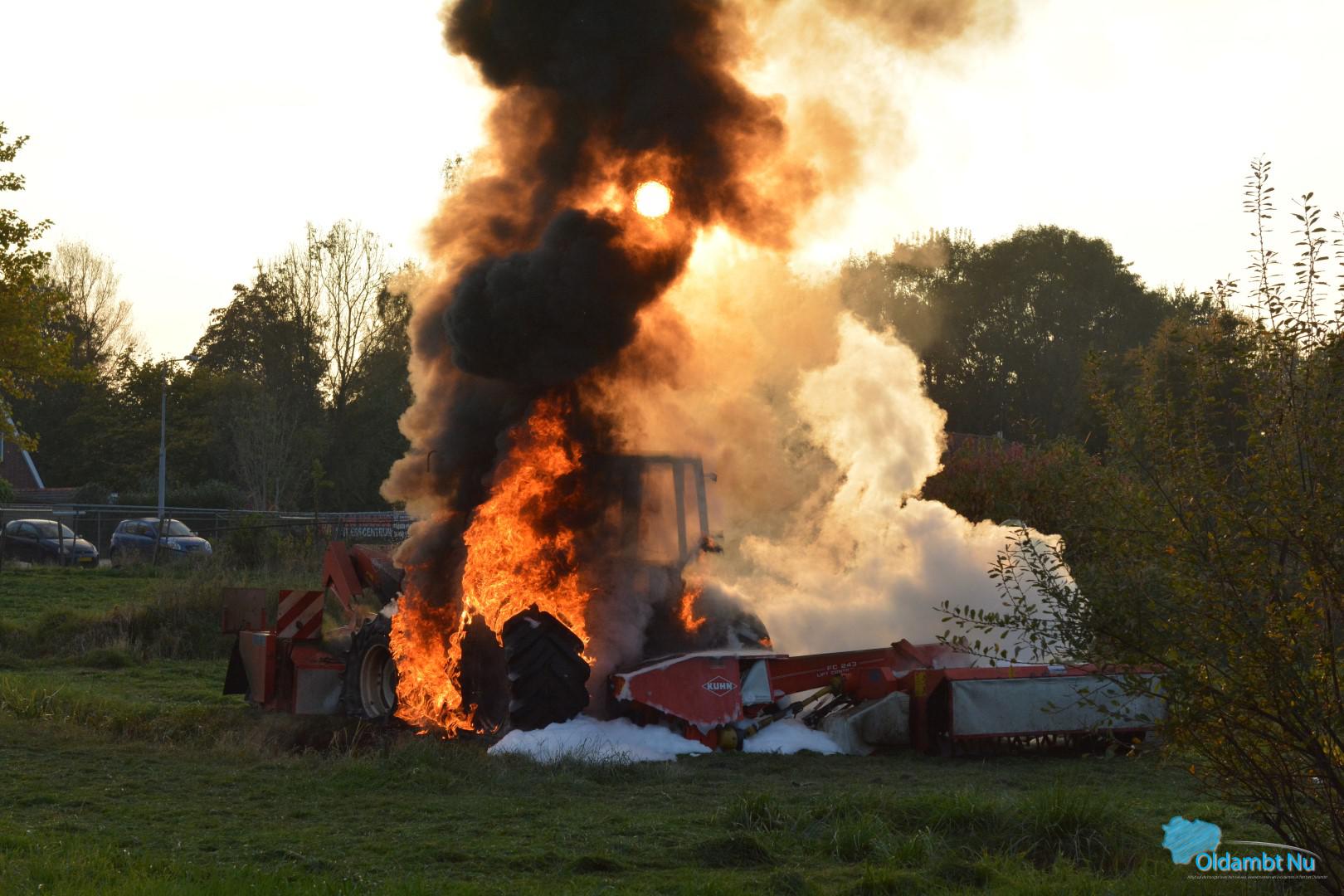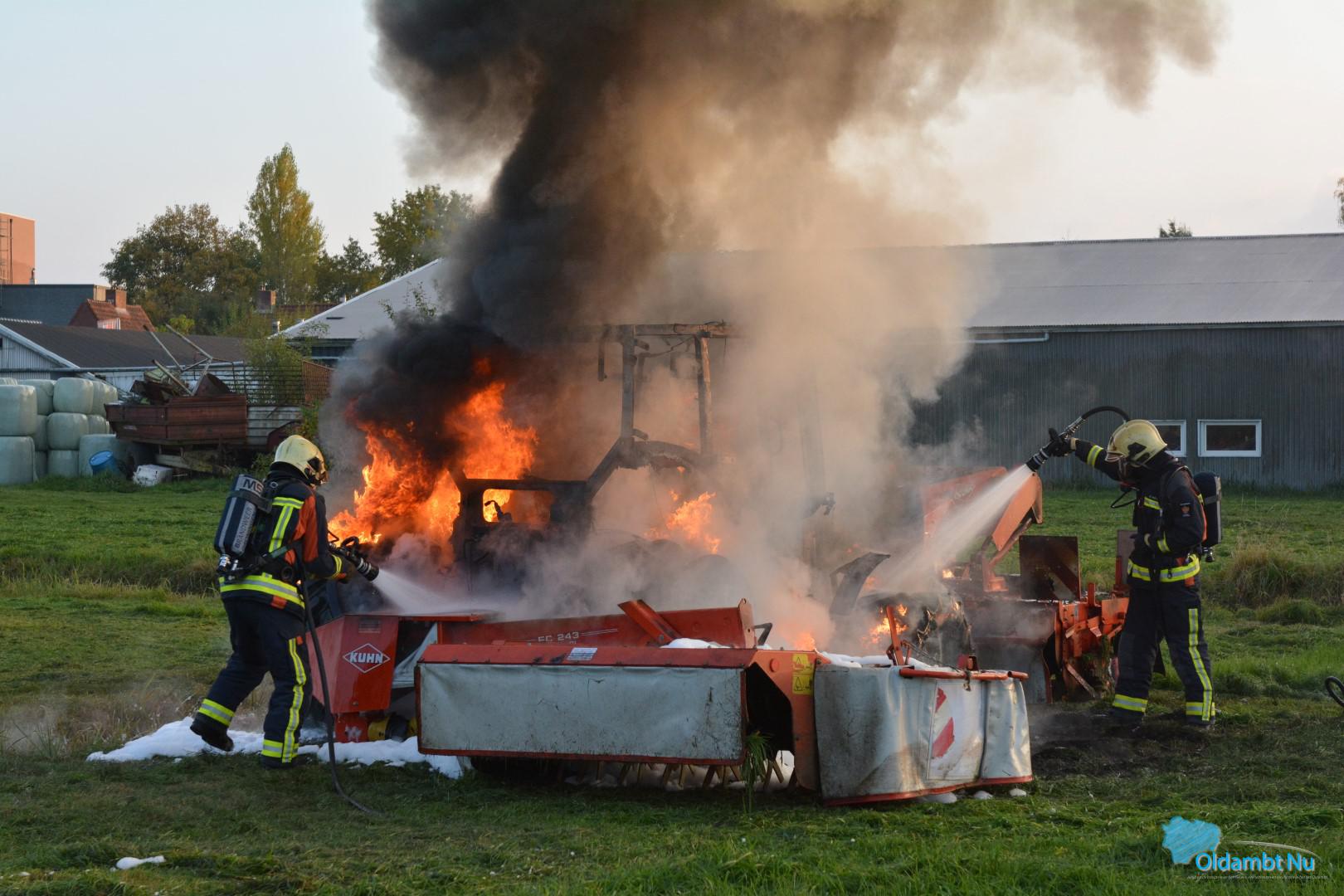 De tractor vatte door een nog onbekende oorzaak vlam. Op het moment dat het vuur uitbrak, was de boer bezig met maaiwerkzaamheden op het land.