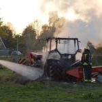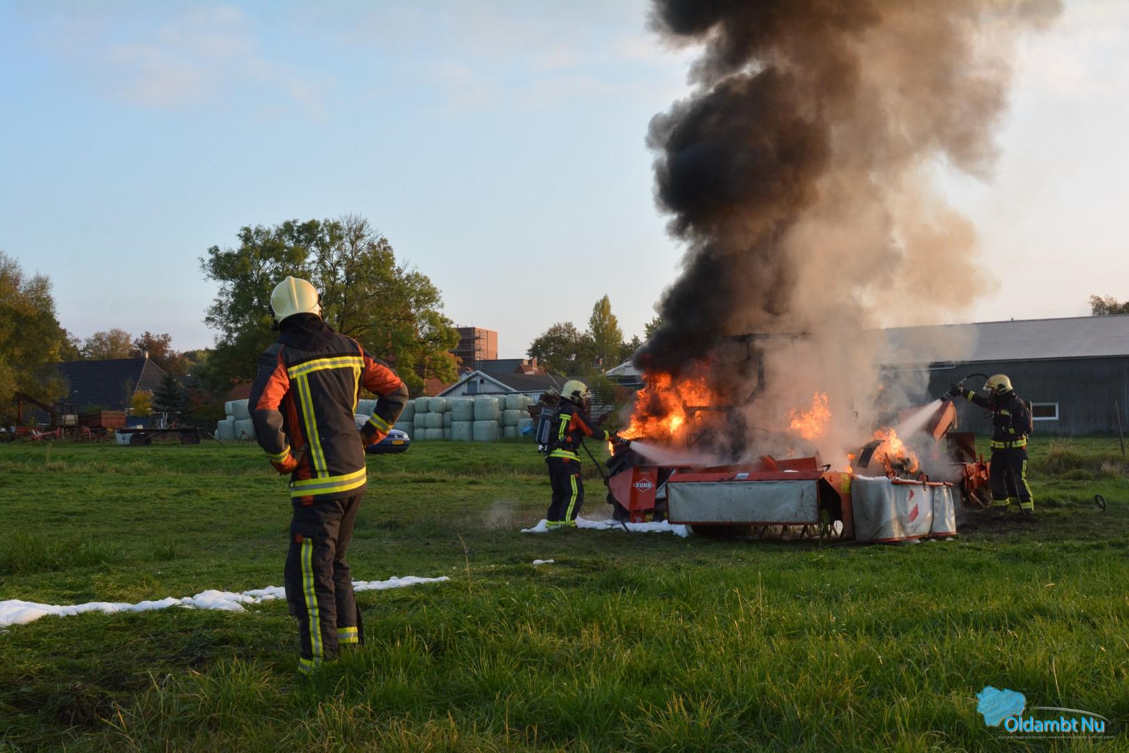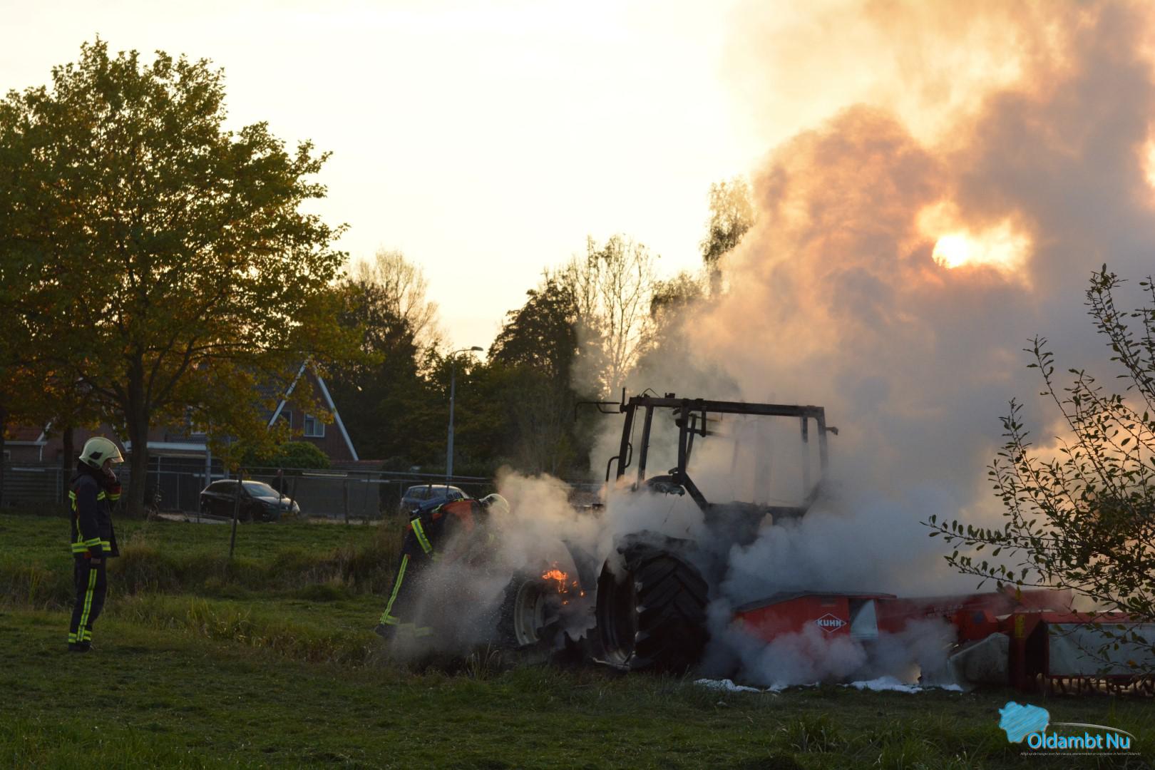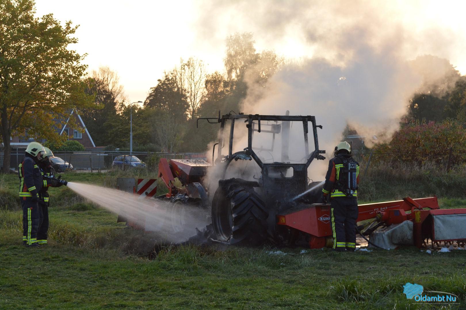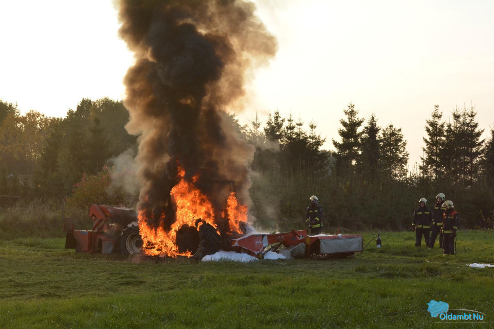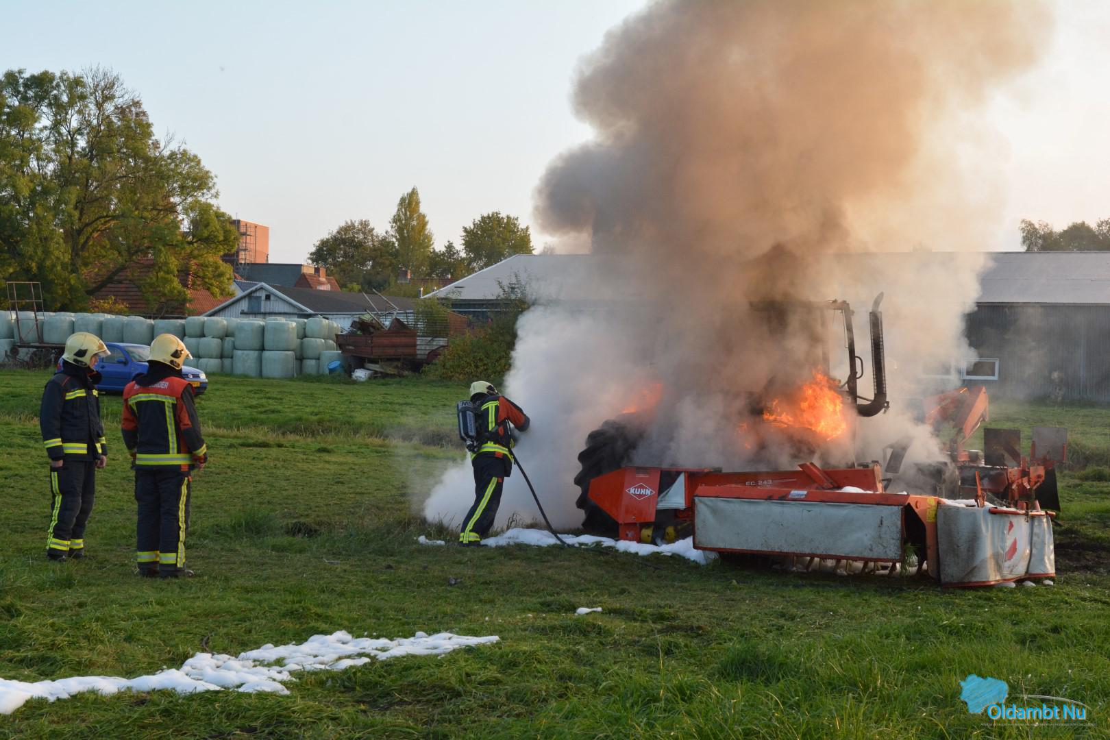 De tractor vatte door een nog onbekende oorzaak vlam. Op het moment dat het vuur uitbrak, was de boer bezig met maaiwerkzaamheden op het land.