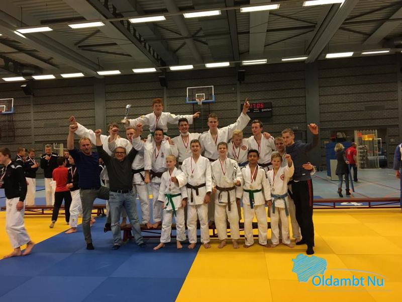 De jongens -15 jaar kwamen als 2e uit de poule en wisten zich met sterk judo naar de finale te judoën. Hierin troffen zij de tegenstander waarin de poule van was verloren. Nu konden de judoka’s de rollen omdraaien en werd er met 4-3 gewonnen.