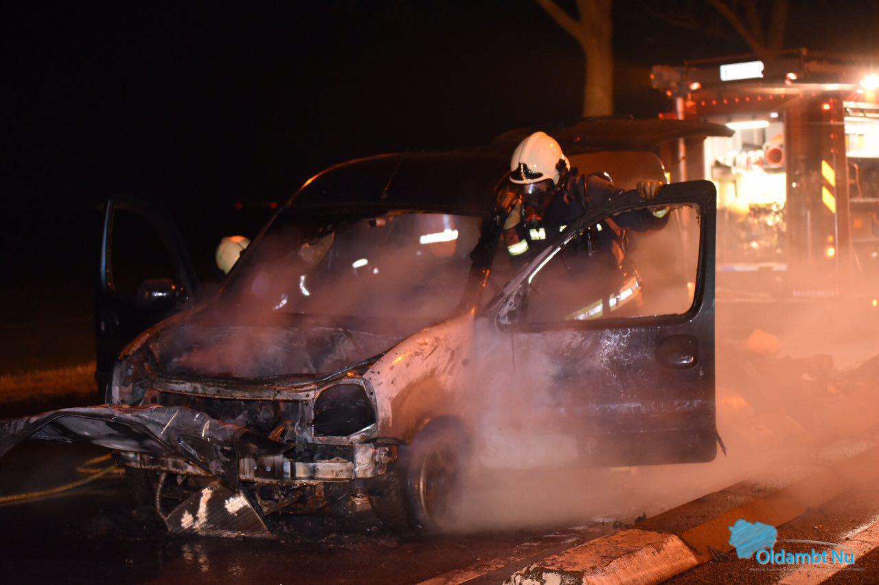 Door een nog onbekende oorzaak brandde een bestelbusje volledig uit. Autoberger Fruitema heeft de uitgebrande auto geborgen.