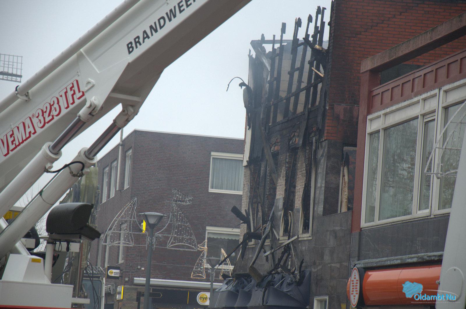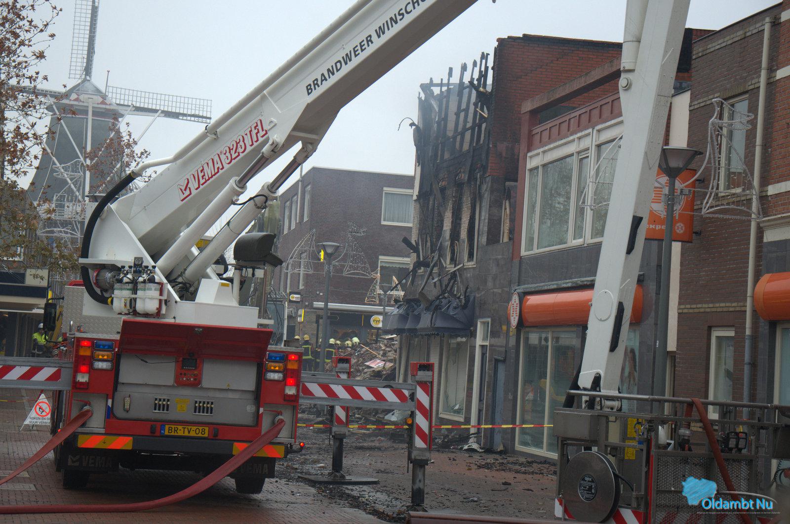 Bij de brand, die donderdagnacht ontstond, zijn drie panden volledig verwoest. Van een vierde pand is de bovenverdieping verwoest. Twee panden, van de Intertoys en Expert, hebben flinke schade.