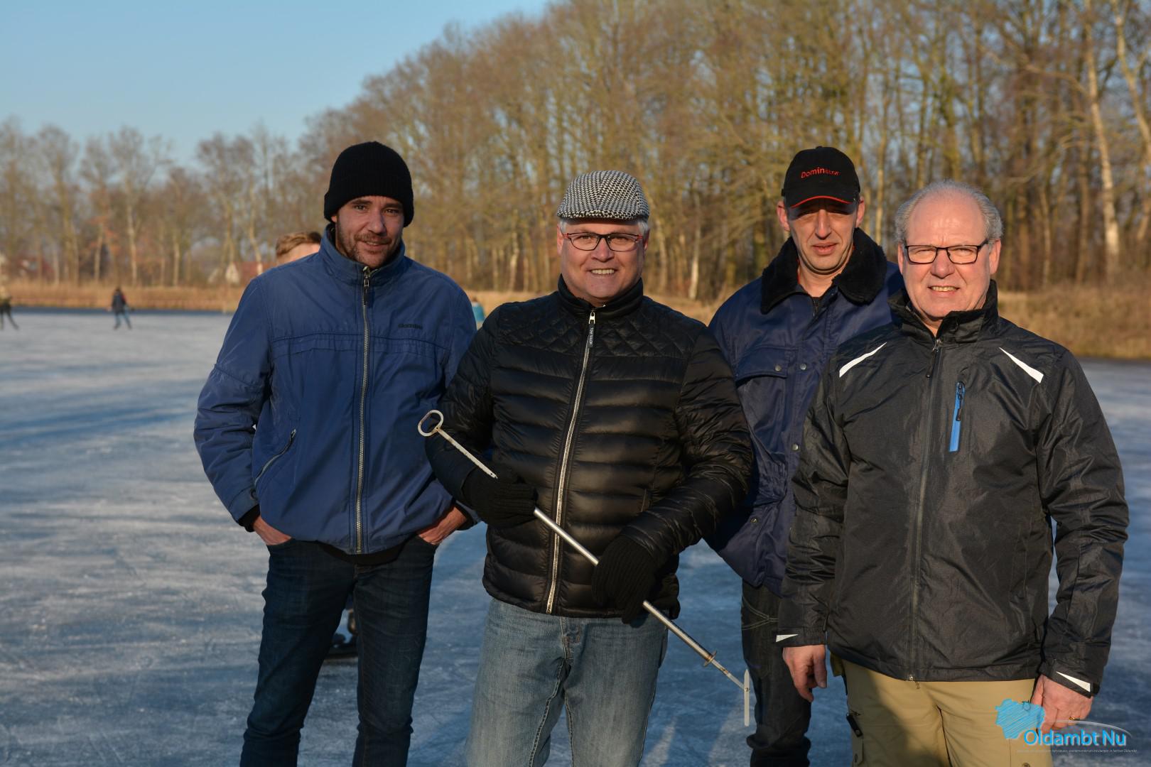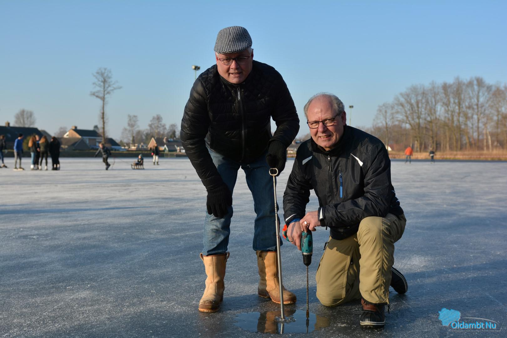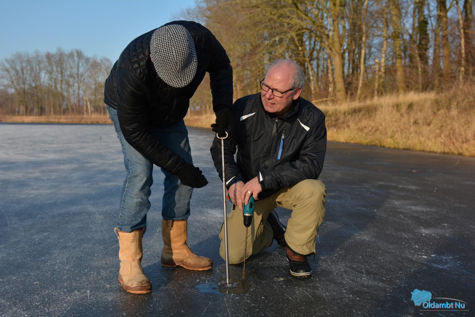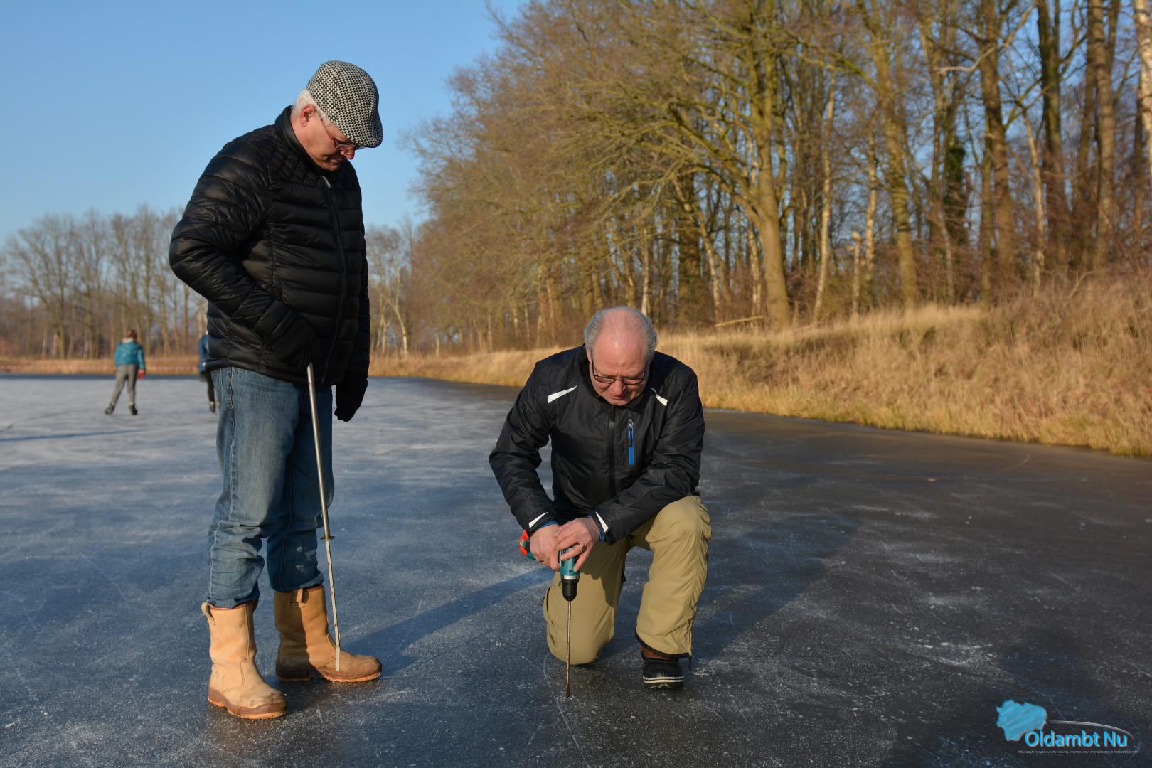 IJsmeesters meten vakkundig het ijs in Scheemda
